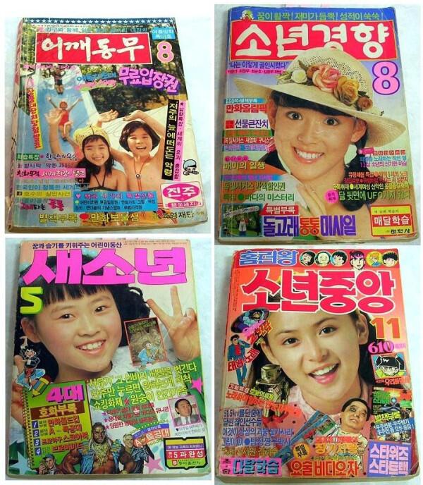각종 소년잡지입니다. 만화도 있고 여러 친구들끼리 수다 떨기 좋은 가십거리도 많았습니다. 그리고 소년들의 로망, SF영화 소개에다가 풍성한 부록까지, 다음 달을 손꼽아 기다리게 하던 종합선물세트였죠. 지금은 사라진 지하철 상가 안의 대형 서점에 가면, 어머니 옷자락에 매달려 떼를 쓰는 또래 학생들이 항상 있었습니다.