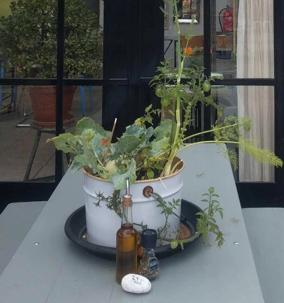 호텔 식당은 정원에서 갓 수확한 식재료들로 주마다 (동절기에는 열흘이나 보름 단위) 제철 메뉴를 구성한다. 흔히 "팜 투 테이블"로 불리는 자급자족 형태의 외식 공간은 유통에서 발생하는 탄소 발자국을 줄이고 "자연이 주는 것만" 소비하는 데에 그 목적이 있다. 내가 방문한 주간에는 토마토와 함께 끓인 홍합요리, 펜넬과 구운 무화과, 부라타 치즈를 얹은 토스트, 구안찰레(이탈리아 가공육의 한 종류)와 라디치오(이탈리안 치커리)를 얹은 피자, 자두 타르트가 준비되었다. 대부분의 요리는 여전히 장작을 때는 오븐을 거쳐 서빙된다. 홍합과 구안찰레, 그 외 제빵에 필요한 재료 등을 제외하고는 모두 정원에서 난 재료들로 요리를 했다. 특히 홍합 메뉴에 대한 설명이 인상적이었는데, 원래 이맘 때는 캐나다산 랍스터를 활용한 요리가 여름철 대표 메뉴로 제공되었다고 한다. 하지만 채소 작물을 수급하는 방식과 비슷하게 육류나 생선류도 최대한 탄소발자국을 발생시키지 않는 방향으로, 그래서 환경에 (이롭진 않더라도) 해롭지 않은 방향으로 나아가기 위해 홍합 요리를 구상하게 되었다고 한다. 물론 코로나19로 항공 수급이 쉽지 않은 영향도 없진 않았겠지만, 이런 결정을 내리고 그 이유를 부러 설명하는 것에 마음이 끌린다.
