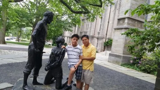 상큼한 녹음이 짙게 드리운 화창한 칠월의 중순. 한 달에 한 번꼴로 아들과 함께 찾는 이 프린스톤 대학 교정에서 단골 코스인 이 동상 앞에 매번 사진을 찍어 아들의 성장 과정을 담아오고 있다. 이성과 지성이란 대명제를 논하기에는 너무나도 초라한 발달 장애를 가진 아들에게 이 동상의 왼쪽은 누구고 오른쪽은 누구냐고 매번 물어도 대답을 제대로 못한다.