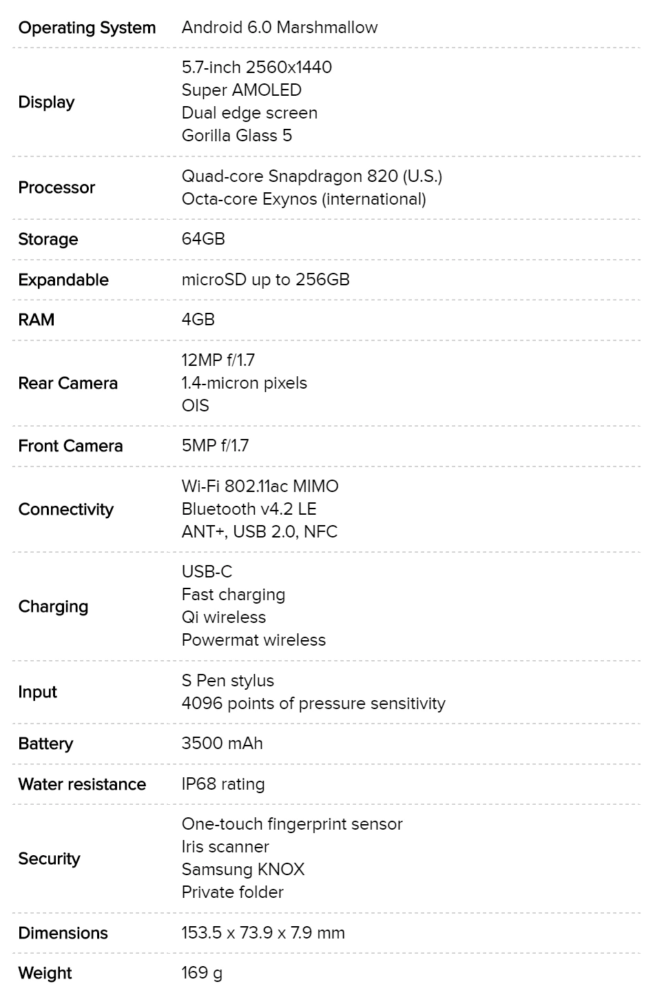 갤럭시 노트7의 스펙은 갤럭시 S7과 거의 동일합니다.