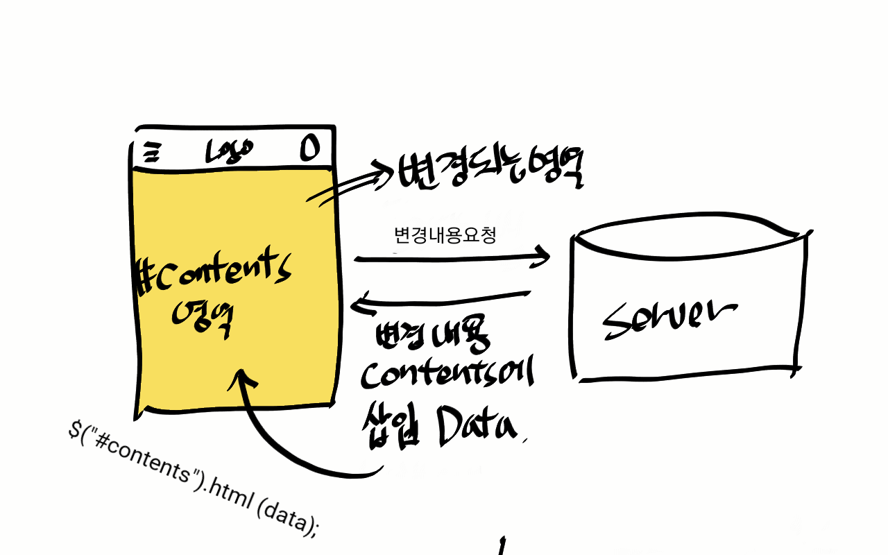 메인 페이지에서 다음 메뉴로 클릭하면 일반적으로 html전환을 하게 됩니다. index.html에서 하이퍼 링크로 menu1.html 이렇게 가겠죠. 앱에서는 이렇게 진행하지는 않습니다. 물론 이렇게 해도 되지만 전체적으로는 최소한 변화된 데이터만 화면에서 바꾸도록 처리합니다.