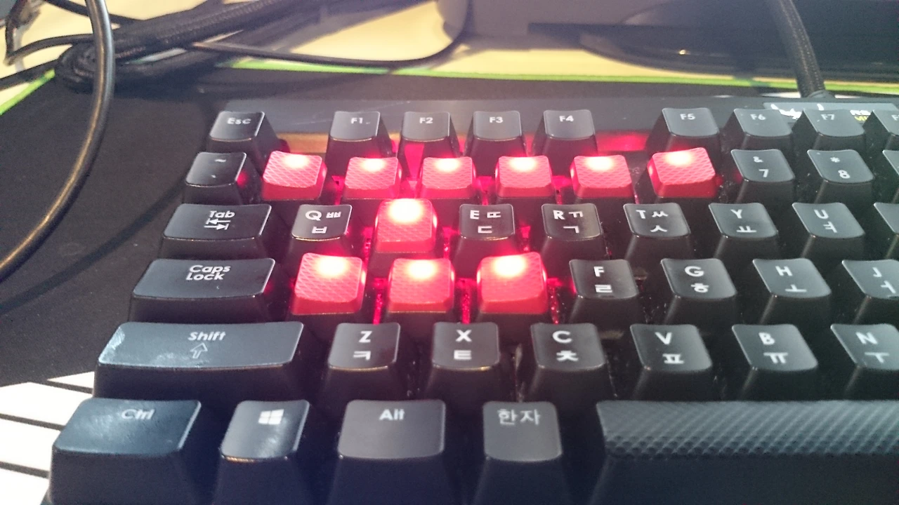 키보드는 무거워야 합니다. 무게가 있어야 단단하게 자리를 잡아 줍니다. 그런 면에서 바디까지 메탈인 CORSAIR키보드는 딱 자리 잡고 받쳐 줍니다. 그리고 재질이 차가운 메탈이 코팅 처리해서 촉감이 좋습니다.