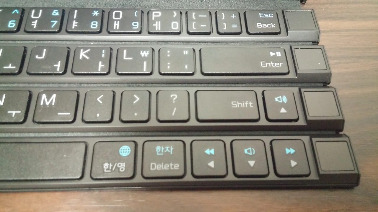 휴대하기 편하다고 뭐 편한 키보드는 아닙니다. 액셀 문서 작성하시는 분들께는 극구 반대하는 키보드이며 워드나 이런 글을 많이 적는 분들께는 좋은 키보드 일수 있습니다. 가벼운 키보드들은 많습니다. 그중에 편한 키보드도 많지만 이렇게 휴대하기 편한 키보드는 만나기 힘들고 또 일반 실리콘 롤키보드 보다는 조금 키감이 나은 정도 입니다. 서피스 타입키보드 느낌이라고 보시면 됩니다.