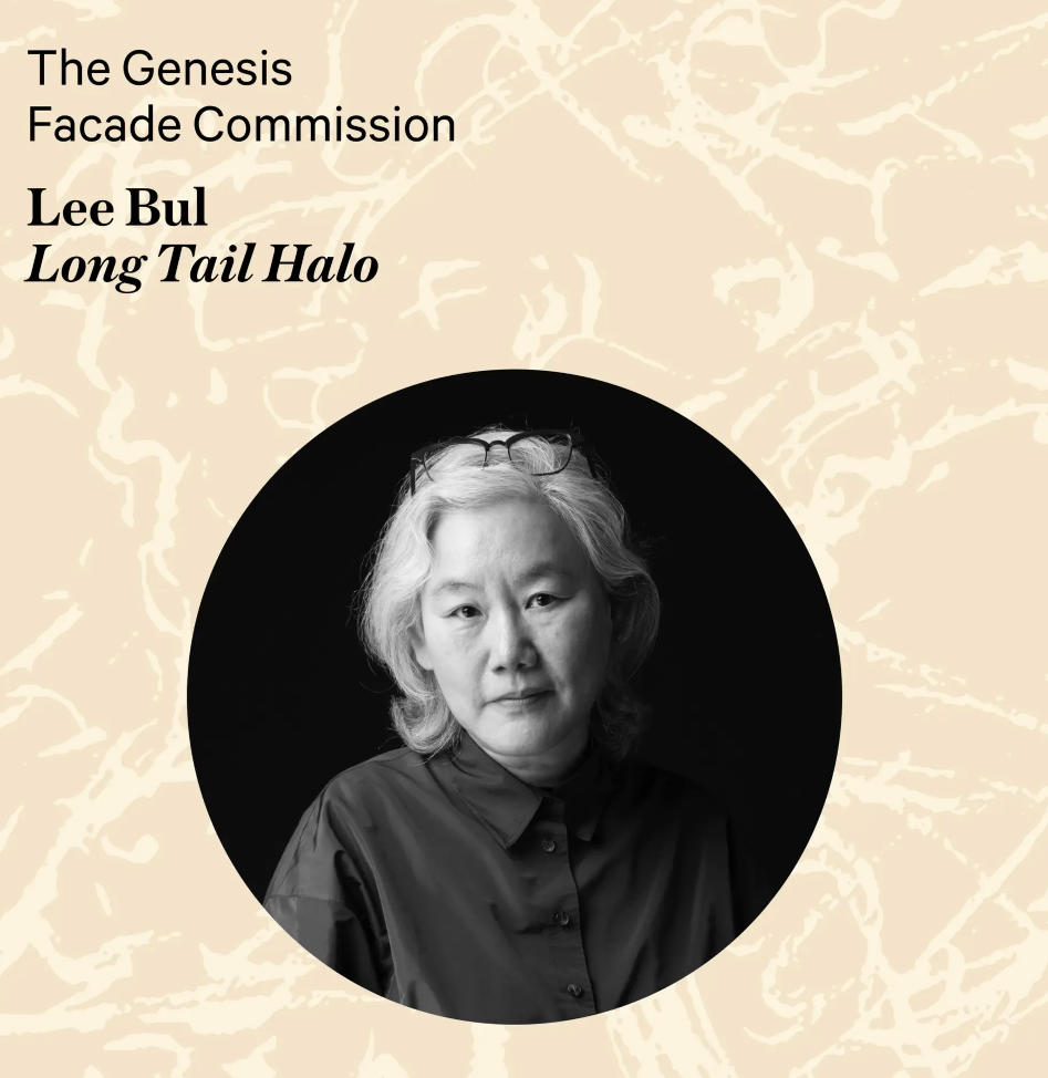 파사드(프랑스어: Façade)는 건물의 정면 외벽 부분을 말해요. 지금의 메트로폴리탄 미술관은 1902년 유명 건축가 리처드 모리스 헌트가 만든 것인데, 거대한 그리스식 기둥 사이에 오목하게 들어간 네 개의 공간(arched niches)을 만들고, 각각 그리스, 이집트, 르네상스, 근대를 대표하는 조각을 넣으려고 했어요. 그런데 완성하지 못하고 100년 넘게 빈 공간으로 남겨졌었는데, 2019년부터 현대미술조각들을 설치하기 시작했어요. 이를 '파사드 커미션 프로젝트'라고 부르고, 메트로폴리탄의 현대미술 전시 시리즈로 자리매김하게 되었어요. 이번 해부터는 제네시스와 메트로폴리탄의 파트너십으로 ‘더 제네시스 파사드 커미션’이라고 부릅니다. 그리고 이 프로젝트의 첫 번째 주인공으로 선정된 작가가 바로 한국 설치미술 작가 이불(LEE BUL, 60)이고요.