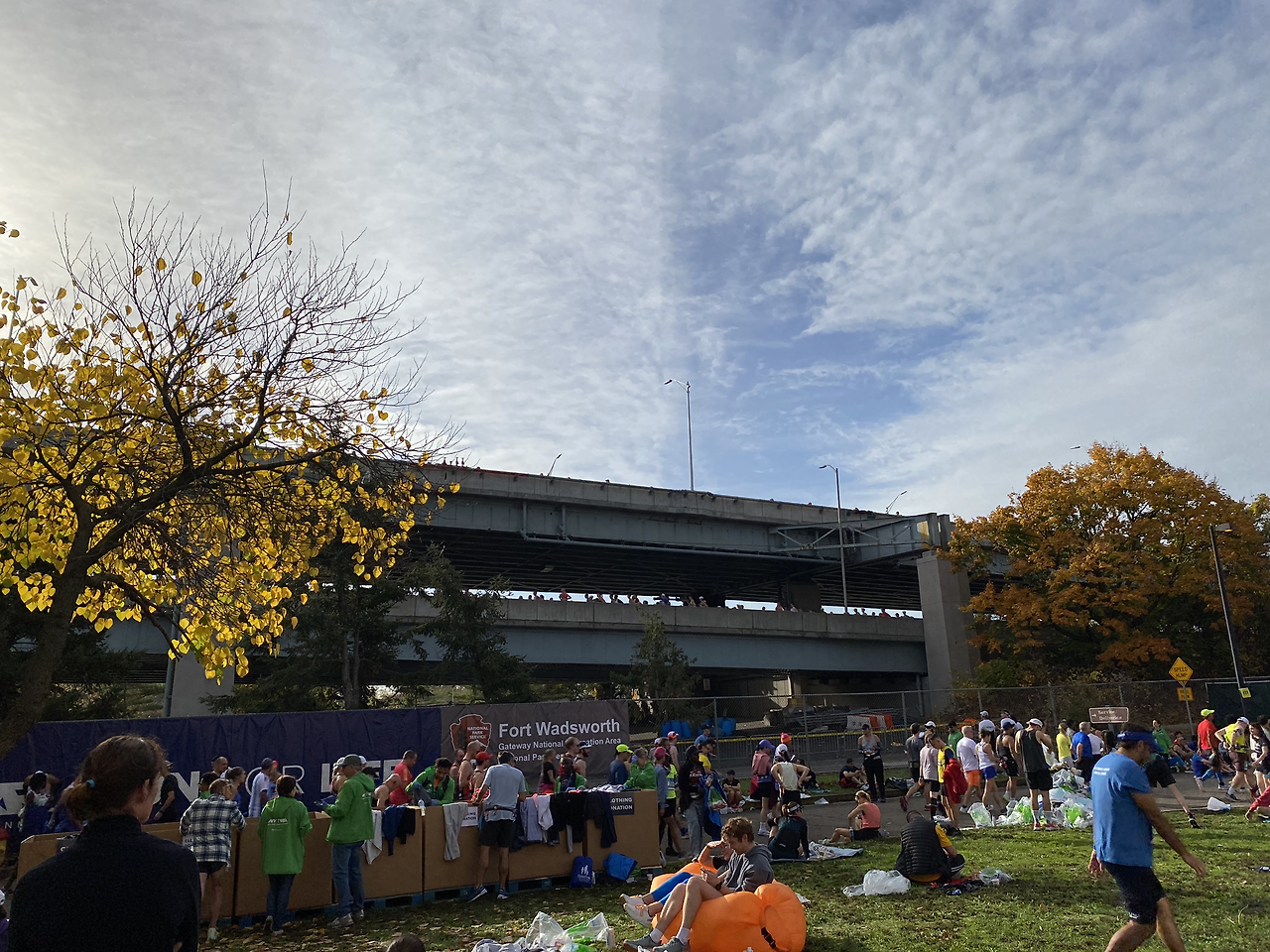 오전 11시 30분, 마지막 wave5 러너들이 출발대에 섰다. 예년과는 다르게 11월 초의 날씨라고 하기엔 비정상적으로 따뜻한 날씨. 섭씨 20도가 넘어가고 해가 중천에 떠있는 시각에 출발한 마지막 러너들. 가는 길이 얼마나 힘들지 눈에 선하지만, 센트럴파크의 마지막 피니시 라인까지 모두가 완주하기를 바란다. 힘든 길이지만 무엇과도 바꿀 수 없는 의미 있는 경험이란 것은 분명하니까. 이제 빌리지 안에는 남아있는 선수들이 없다. 사람들이 모두 빠진 자리에서 자원봉사자들은 나머지 정리를 한다. 버려진 담요나 옷을 주워서 도네이션 박스에 담고, 청소를 하는 자원봉사자도 따로 있었지만 일을 가리지 않고 함께 치웠다.