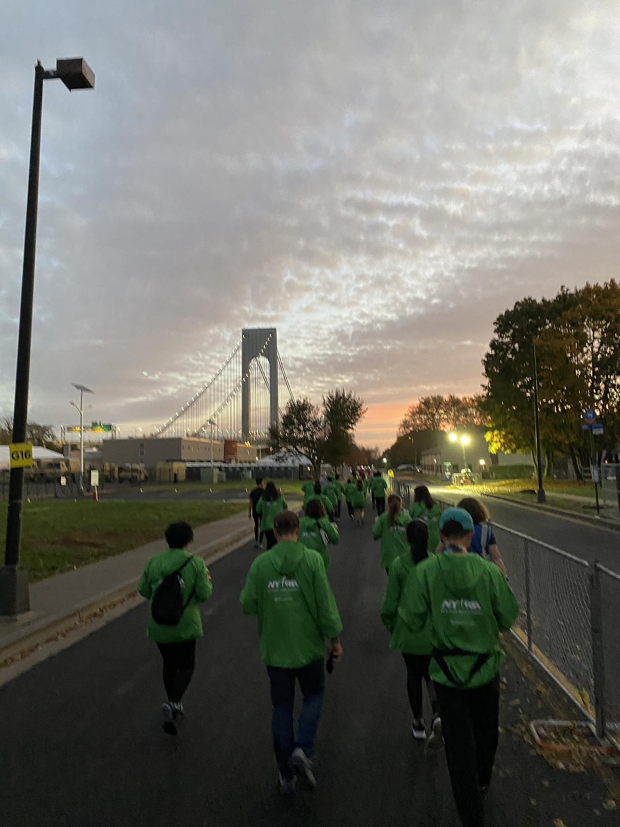 자원봉사 옷을 입고 있는 나로서는 특별히 할 일이 없어도 앉아서 쉴 수는 없다. 나와 남편은 빌리지 안을 반복적으로 돌았다. 그러면서 자연스럽게 러너들이 시작 전 사진을 남기는 일을 도왔다. 수줍게 사진을 찍어달라고 하는 러너들. 기억에 남았던 네덜란드 아버지와 아들. 그 흔한 스마트폰이 아닌 디지털카메라로 오늘을 추억하는 사진을 찍는 아버지. 대회가 시작되는 베라자노 다리를 배경으로 멋쩍게 웃으며 미소를 짓는 아들. 눈이 마주치자 유럽 사람 특유의 눈썹 웃음을 보낸다. 나는 부상 없이 완주하라는 마음으로 엄지척을 날렸다.