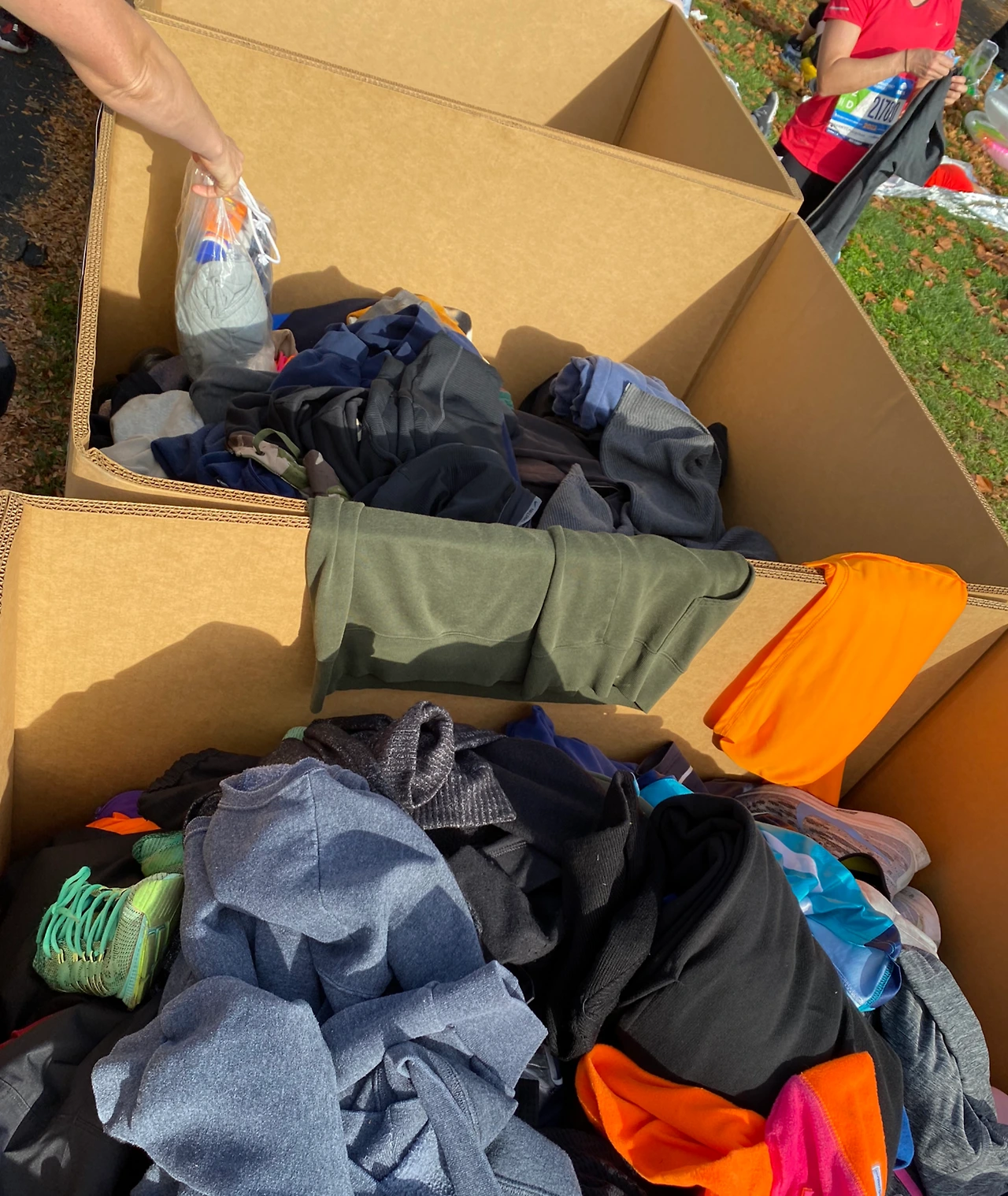 그렇기에 대부분 선수들은 대회복 위에 도네이션 할 만한 옷을 겉에 입는다. 요즘 옷들이야 워낙 질이 좋아서 낡아서 버리는 옷들은 거의 없다. 그렇다 보니 러너들이 놓고 가는 옷들은 버리기 아까운 '멀쩡'한 옷들이다. 그래서 대회 측에서는 그 옷들을 모아 자선단체에 기부를 한다.