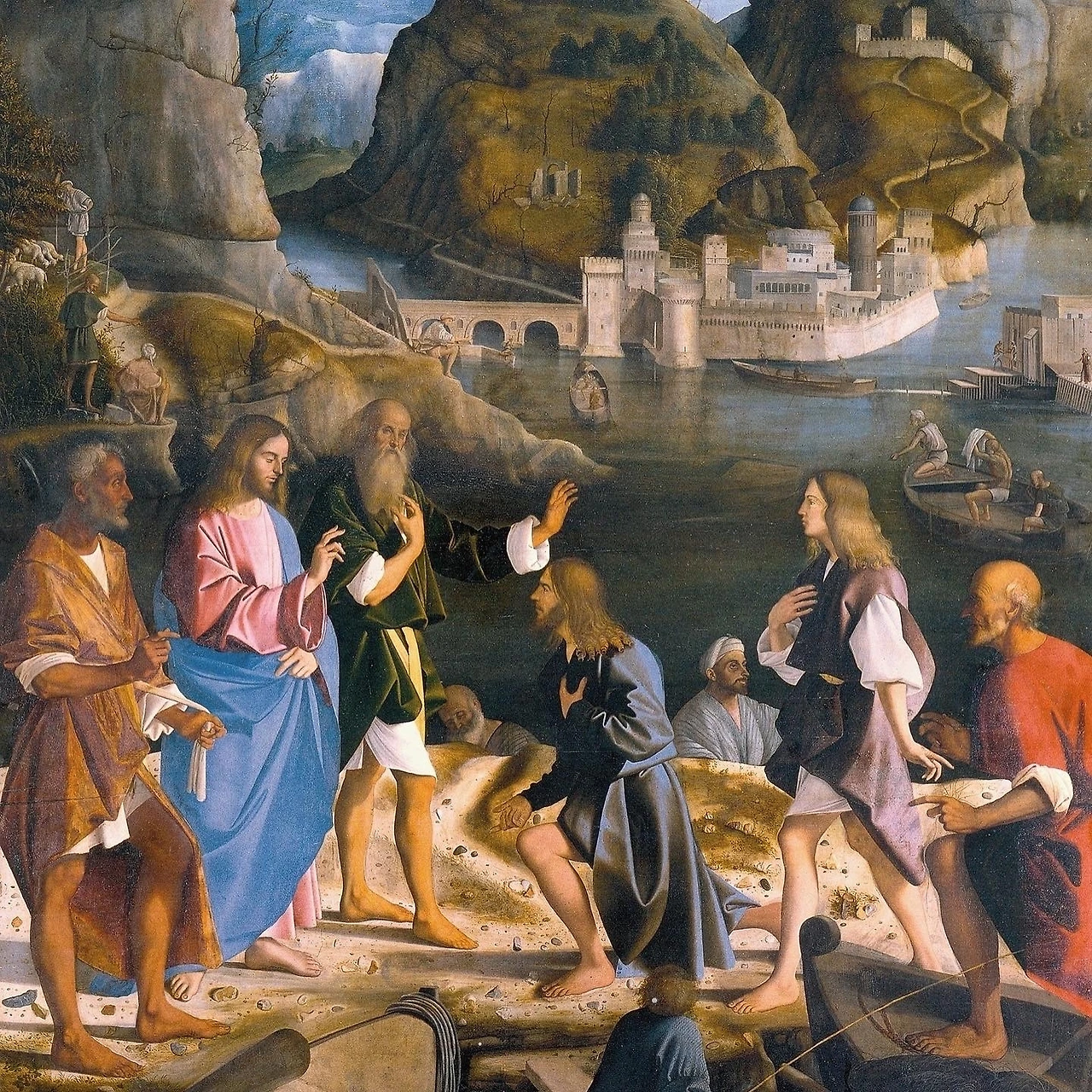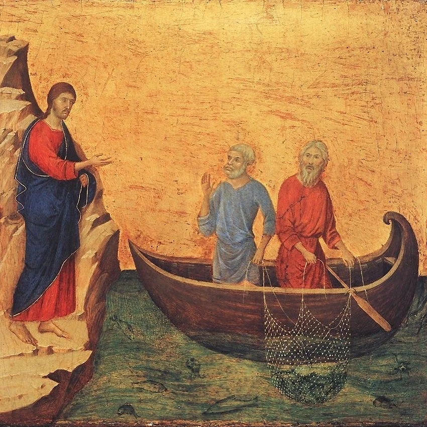 예수님께서 갈릴래아 호숫가를 지나가시다가, 호수에 그물을 던지고 있는 시몬과 그의 동생 안드레아를 보셨다. 그들은 어부였다. 예수님께서 그들에게 이르셨다. “나를 따라오너라. 내가 너희를 사람 낚는 어부가 되게 하겠다." 그러자 그들은 곧바로 그물을 버리고 예수님을 따랐다. 예수님께서 조금 더 가시다가, 배에서 그물을 손질하는 제베대오의 아들 야고보와 그의 동생 요한을 보시고, 곧바로 그들을 부르셨다. 그러자 그들은 아버지 제베대오를 삯꾼들과 함께 배에 버려두고 그분을 따라나섰다.