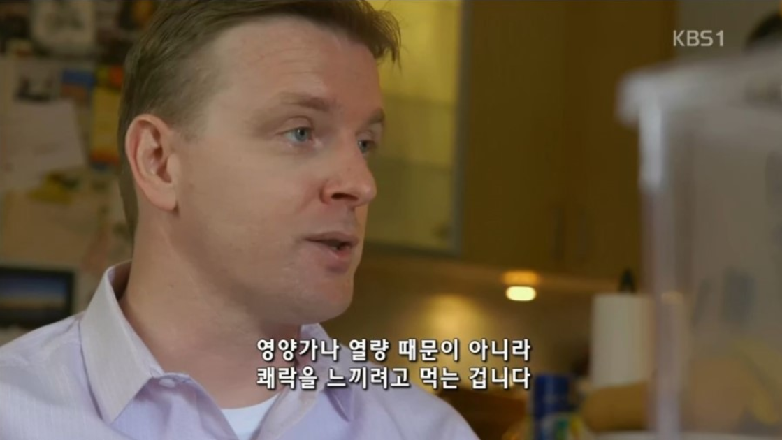 '지방 vs 당분' - 일란성쌍둥이를 대상으로 극단적인 "고탄수화물 식이" vs "고지방식이"를 했다. 과연 누가 더 살이 많이 쪘을까? 놀랍게도 둘 다 살이 빠진다. 이 다큐에서 하고 싶은 말은 이거다. 탄수화물과 지방의 적절하게 가공된 음식을 먹었을 때 살이 찐다! 특히 지방&당분이 1:1로 함유된 '치즈케이크' 같은 자연에 존재하지 않는 음식을 먹게 되면 우리 뇌는 쾌락을 느끼게 되고 그 맛에 중독되어 배가 부른데도 계속 먹게 된다.