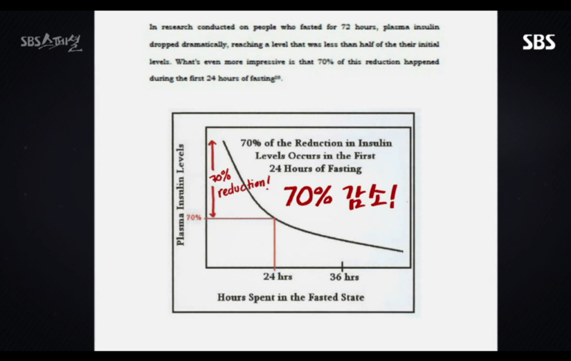 공복시간 증가 -> 인슐린 분비감소 -> 지방저장감소 -> 체중감소