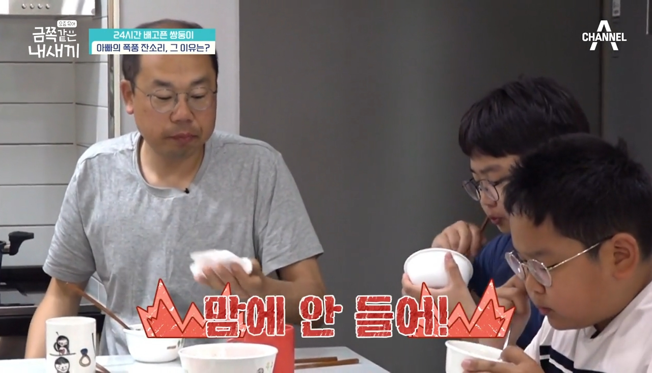 아빠는 살찌는 아들들이 걱정되어 식사시간에 잔소리를 많이 합니다. 바른 자세로 먹어라, 살 좀 빼라, 너무 많이 먹지 마라 등등.