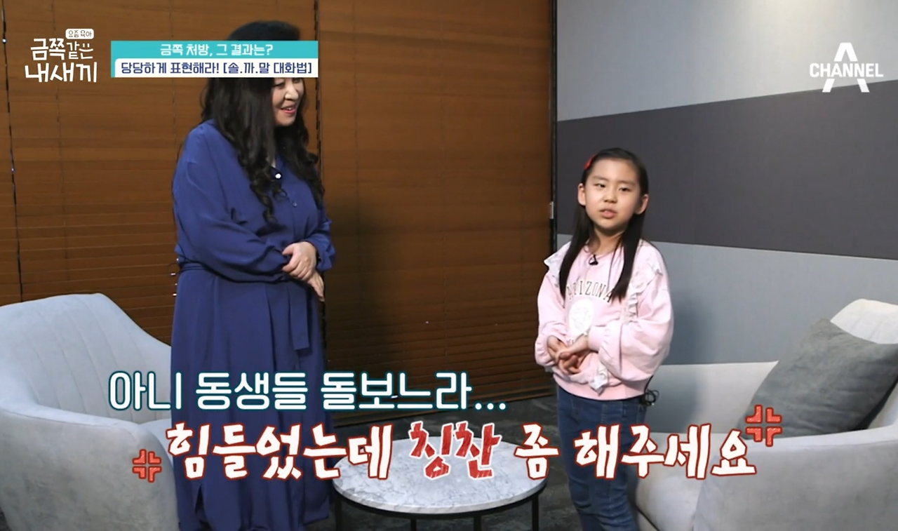 오은영 박사님의 솔루션은 솔.까.말. 대화법. 아이가 솔직하게 까놓고 말하도록 연습해보고 부모님과 하루 잠깐이라도 솔.까.말. 대화를 하는 시간을 갖게 되면서 자신의 속마음을 표현할 수 있게 되었습니다.