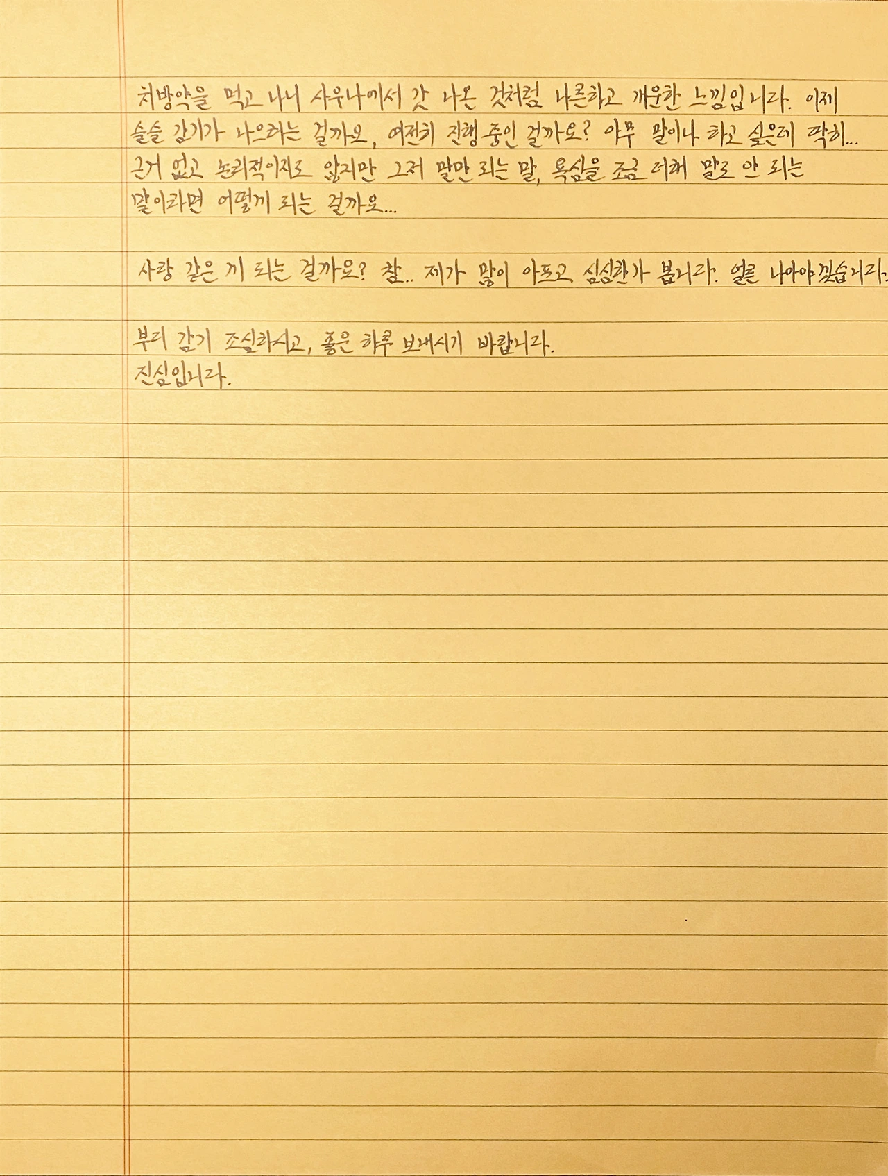 의사는 친절하고 차분했습니다. 치료를 받고 처방전을 들고 약국에 들러 약을 받았습니다. 사람들은 예상보다 일상에서 친절합니다. 덕분에 가벼운 굴레 같은 제 삶이 덜 튑니다. 저도 일상에서 친절하려고 노력합니다.