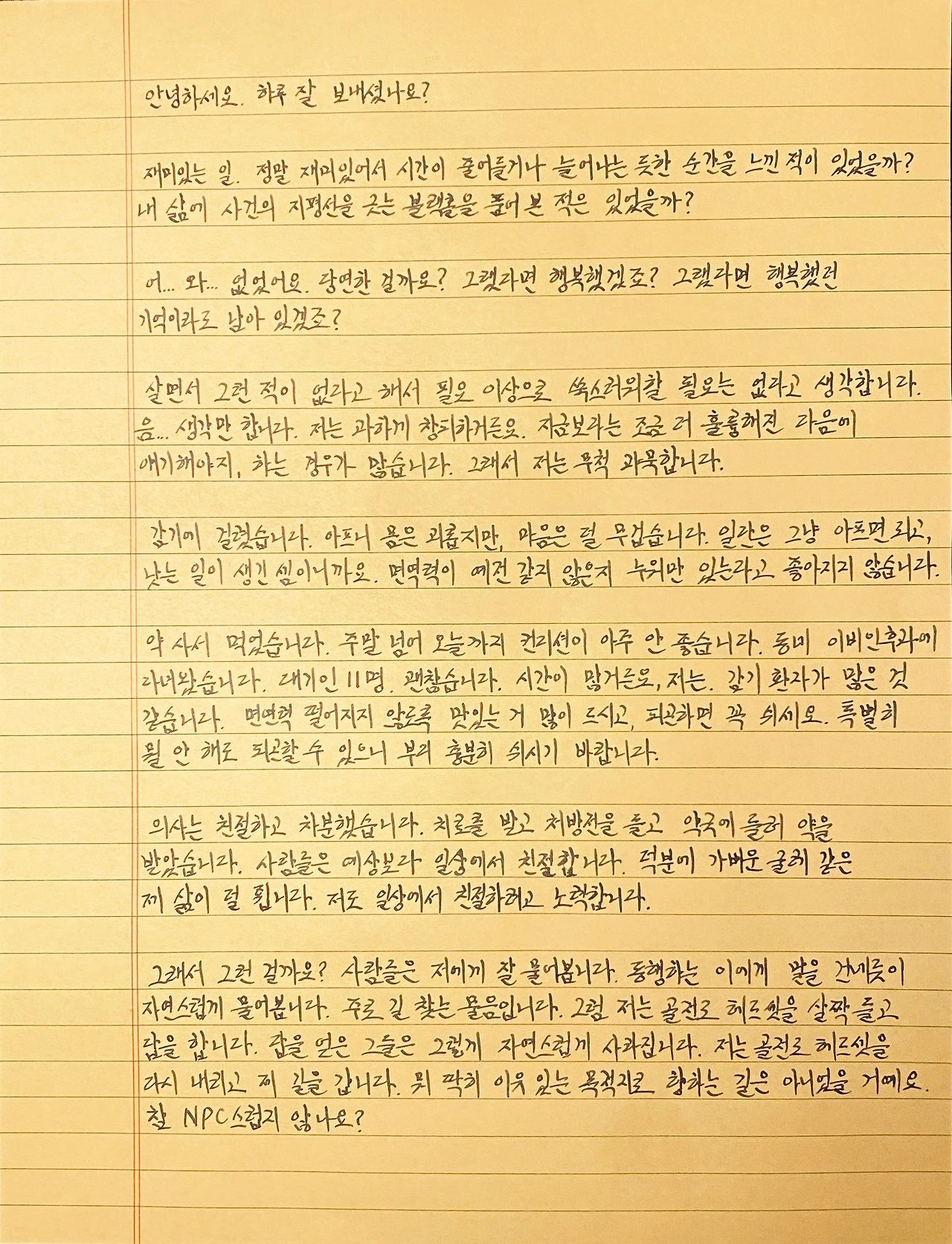 안녕하세요, 하루 잘 보내셨나요?