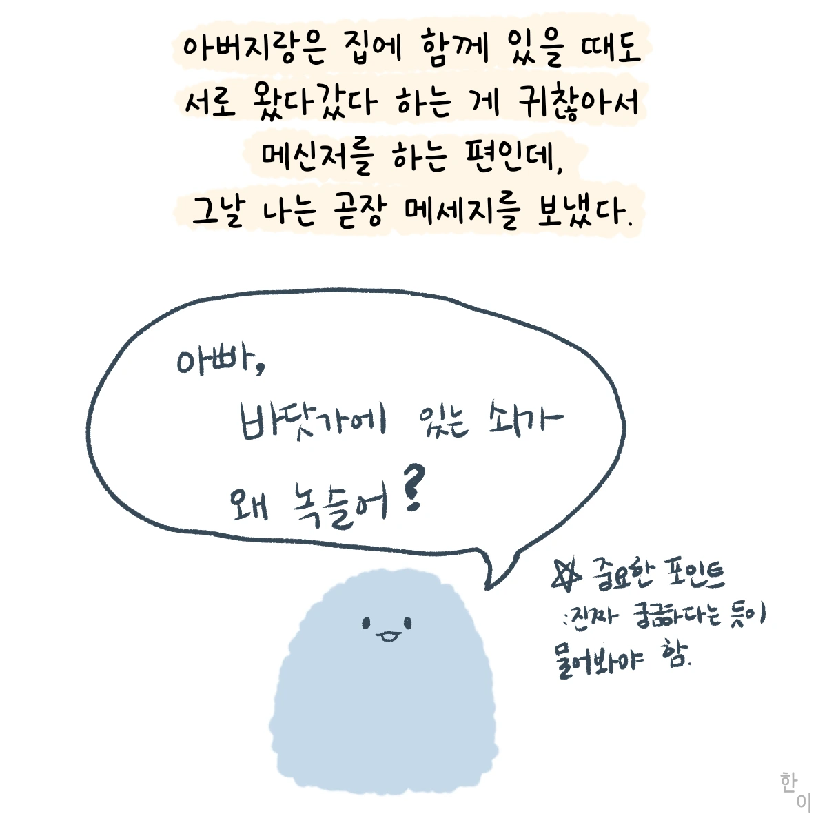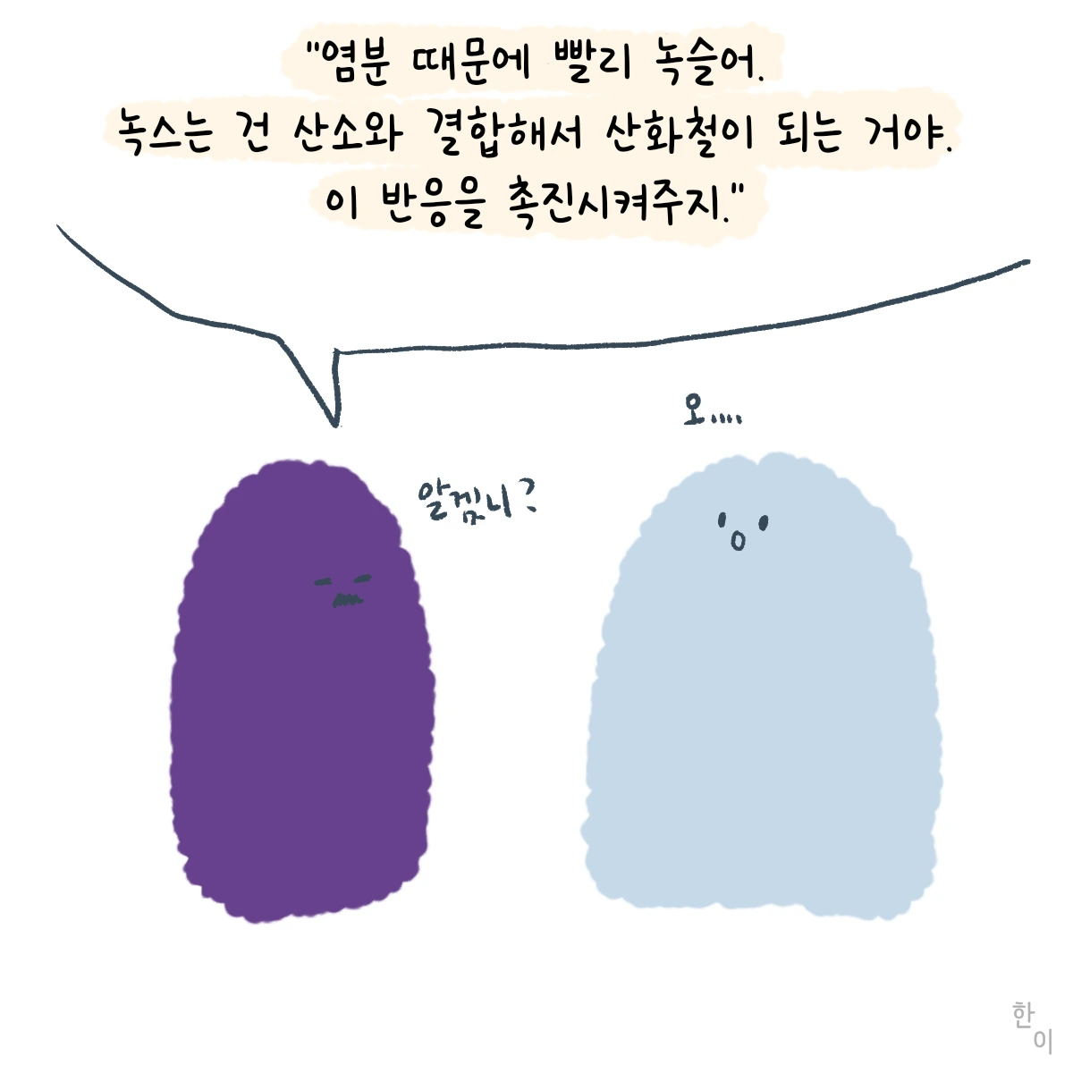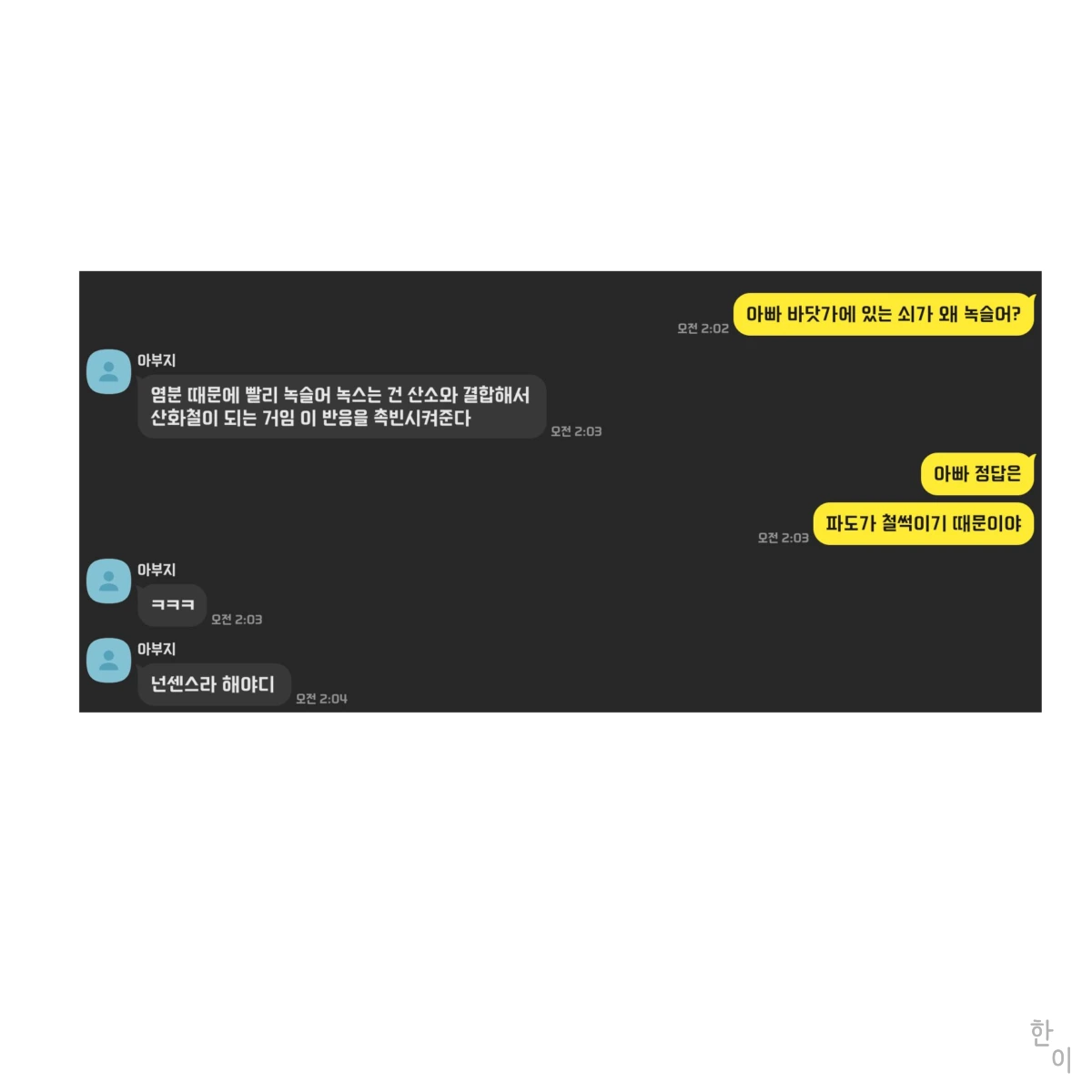 아빠, 바닷가에 있는 쇠가 왜 녹슬어?