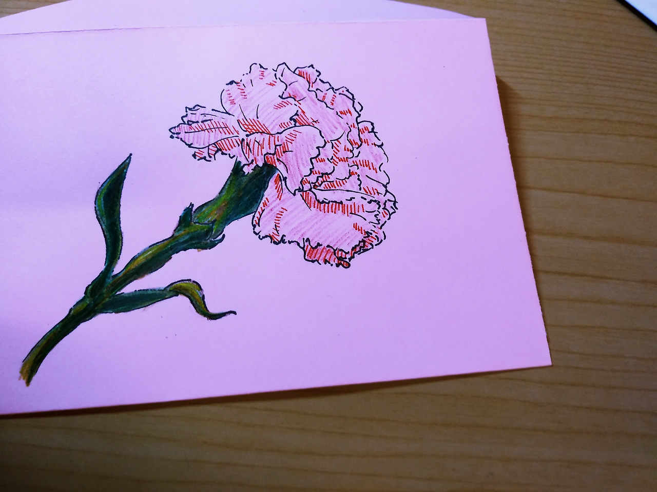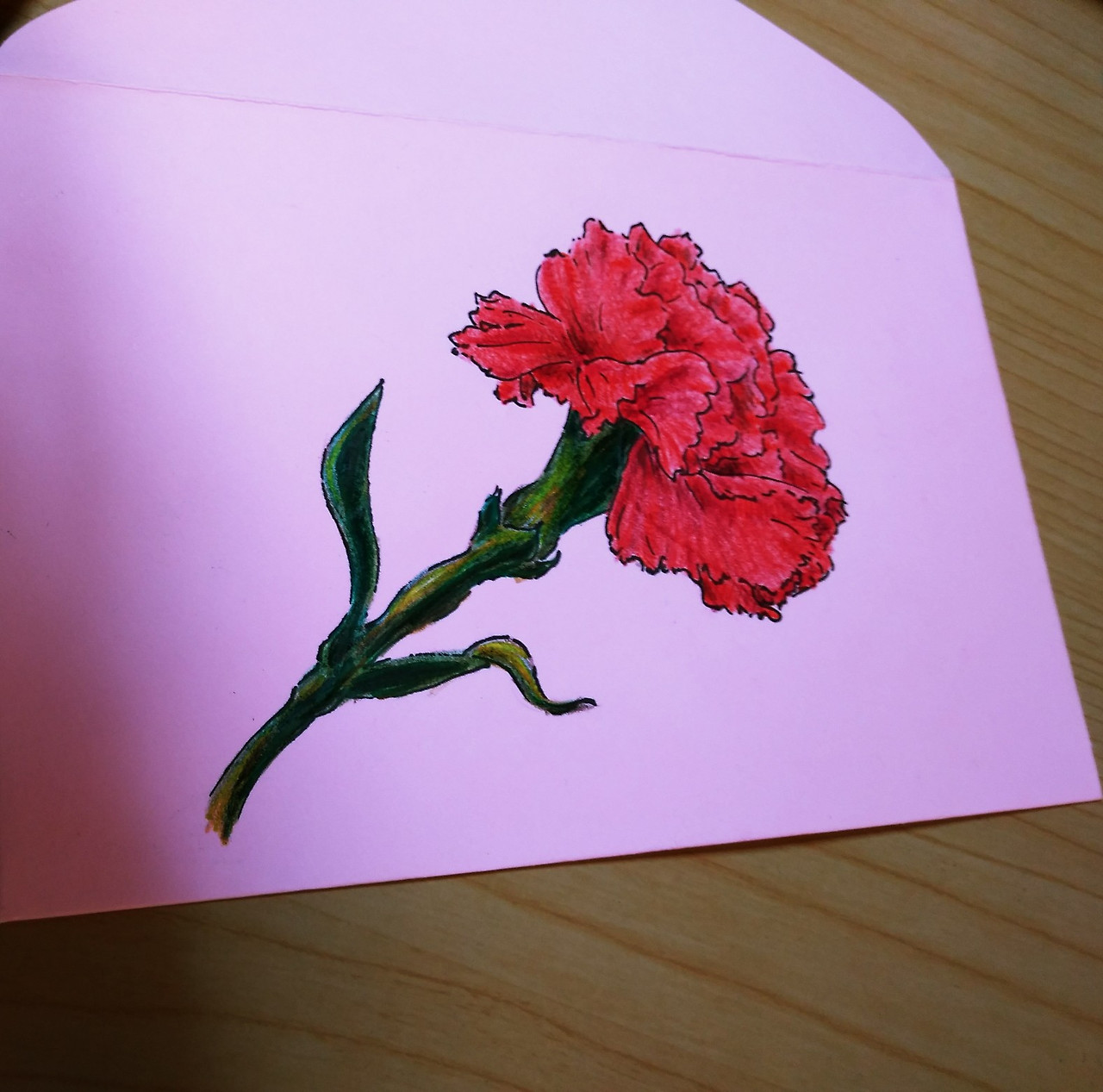 부모님께 카네이션을 사서 붙이는 건 뭔가 특별한 느낌이 없을 거 같아 그려드려야겠다는 생각이 먼저 들었다. 하지만 꽃에 대한 지식이 없었고, 정물화를 평소 연습하지도 않고 생각지도 않아서 많이 긴장되었다. 그려내긴 했지만, 생각했던 것보다 카네이션은 그리기가 어려웠다. 한 20, 30분은 걸렸던 거 같다.