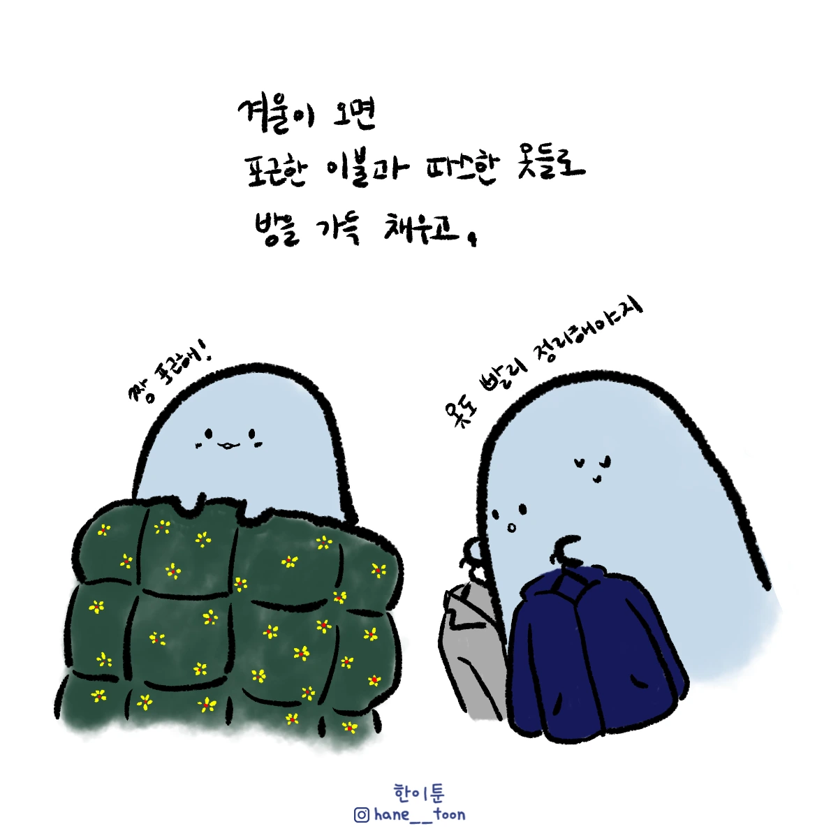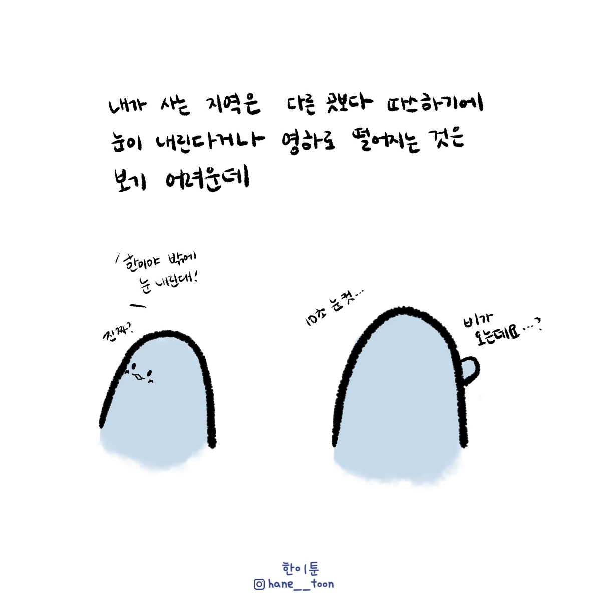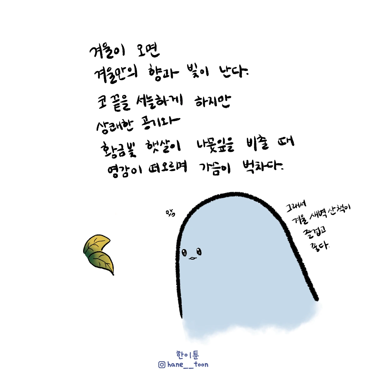 다시 시작, 계속 시작 끄적이는 일상툰, 마음에서 나온 붓으로 편히 그리기. 매주 금요일마다 <한이툰> 연재 중입니다!