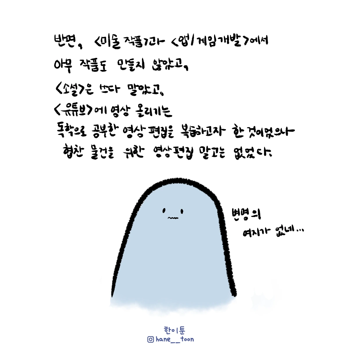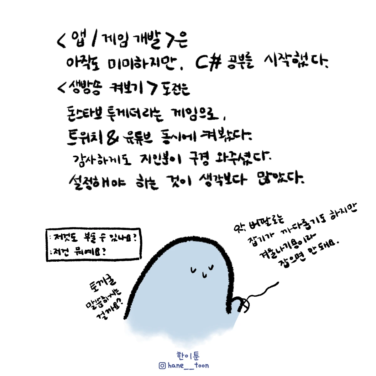 다시 시작, 계속 시작 끄적이는 일상툰, 마음에서 나온 붓으로 편히 그리기. 매주 금요일마다 <한이툰> 연재 중입니다!