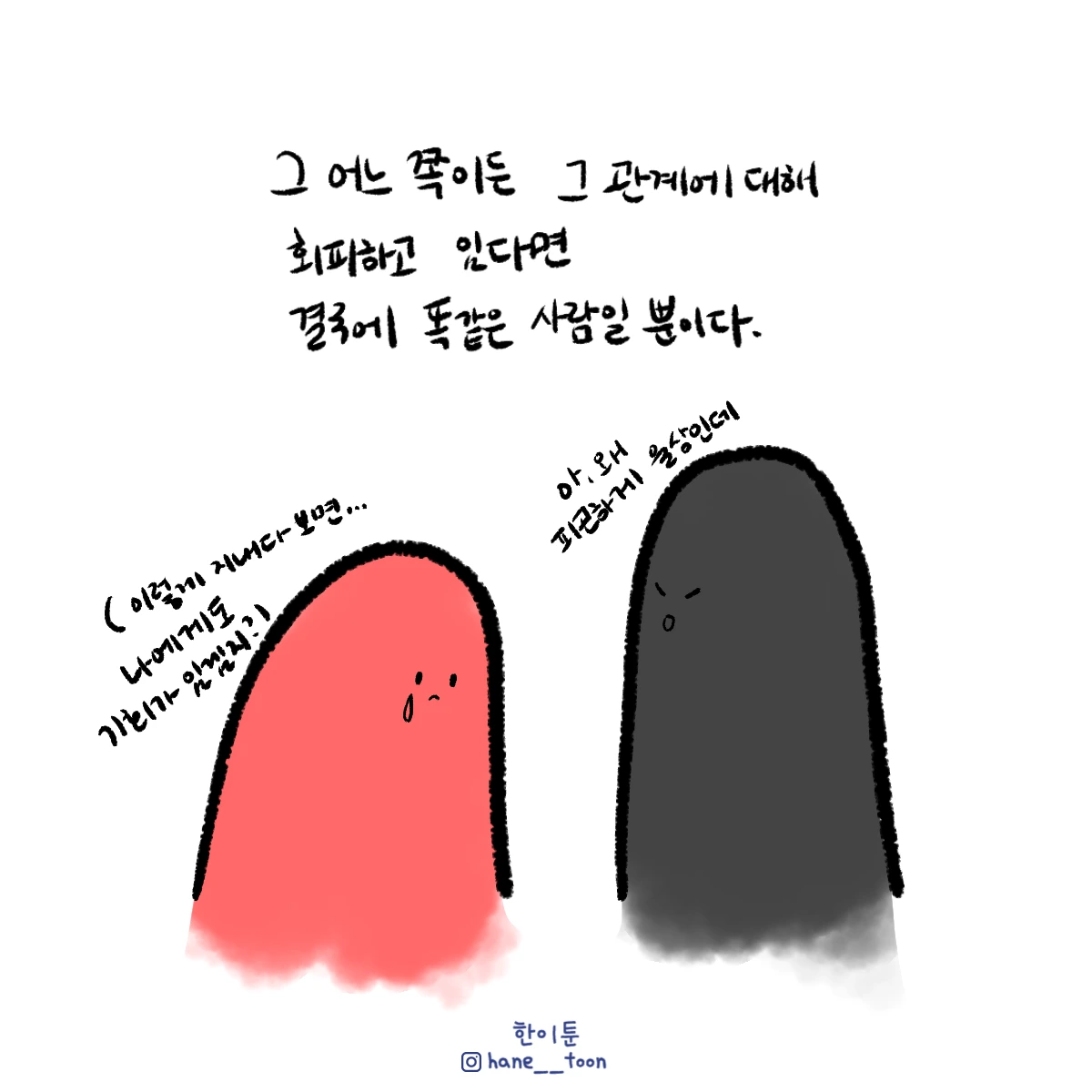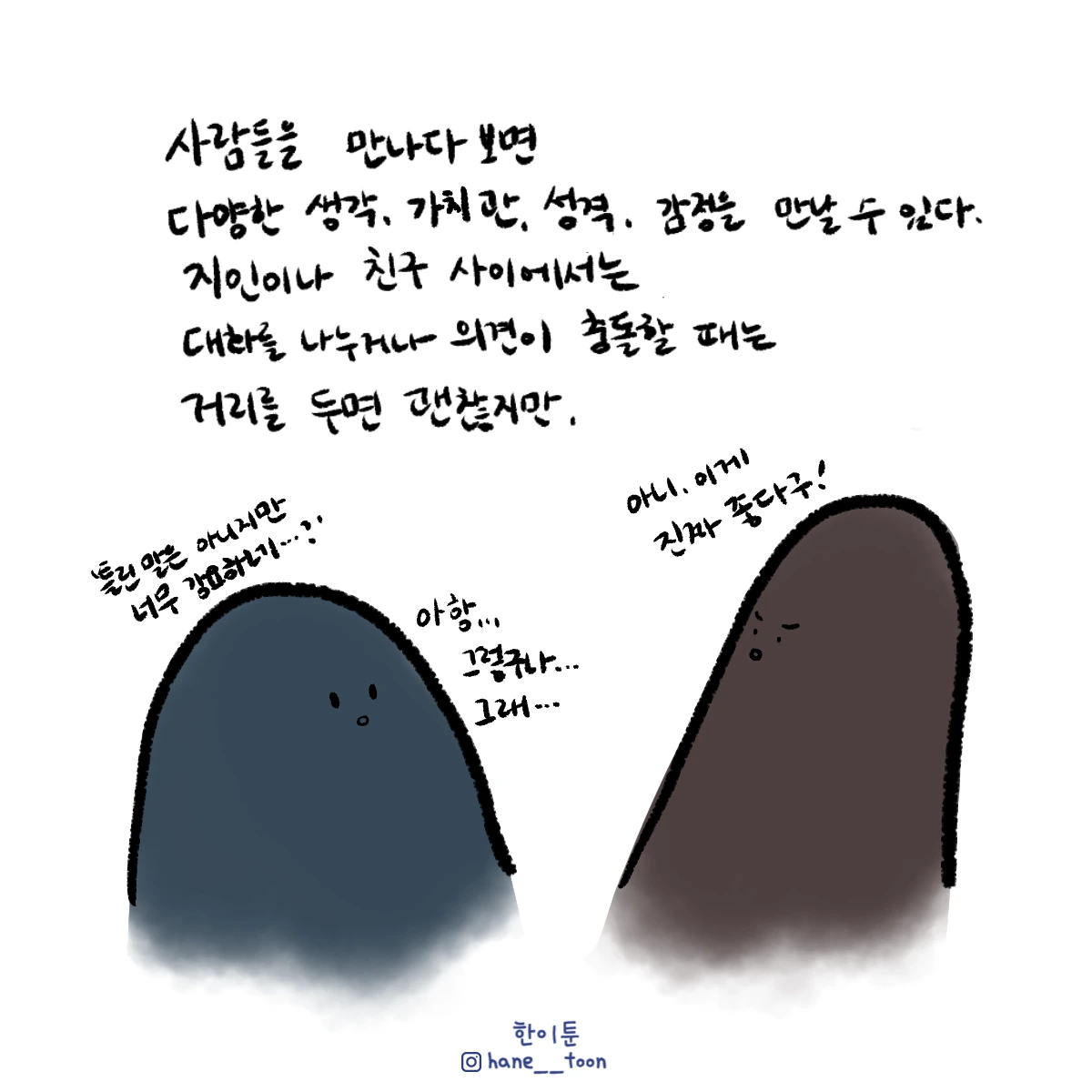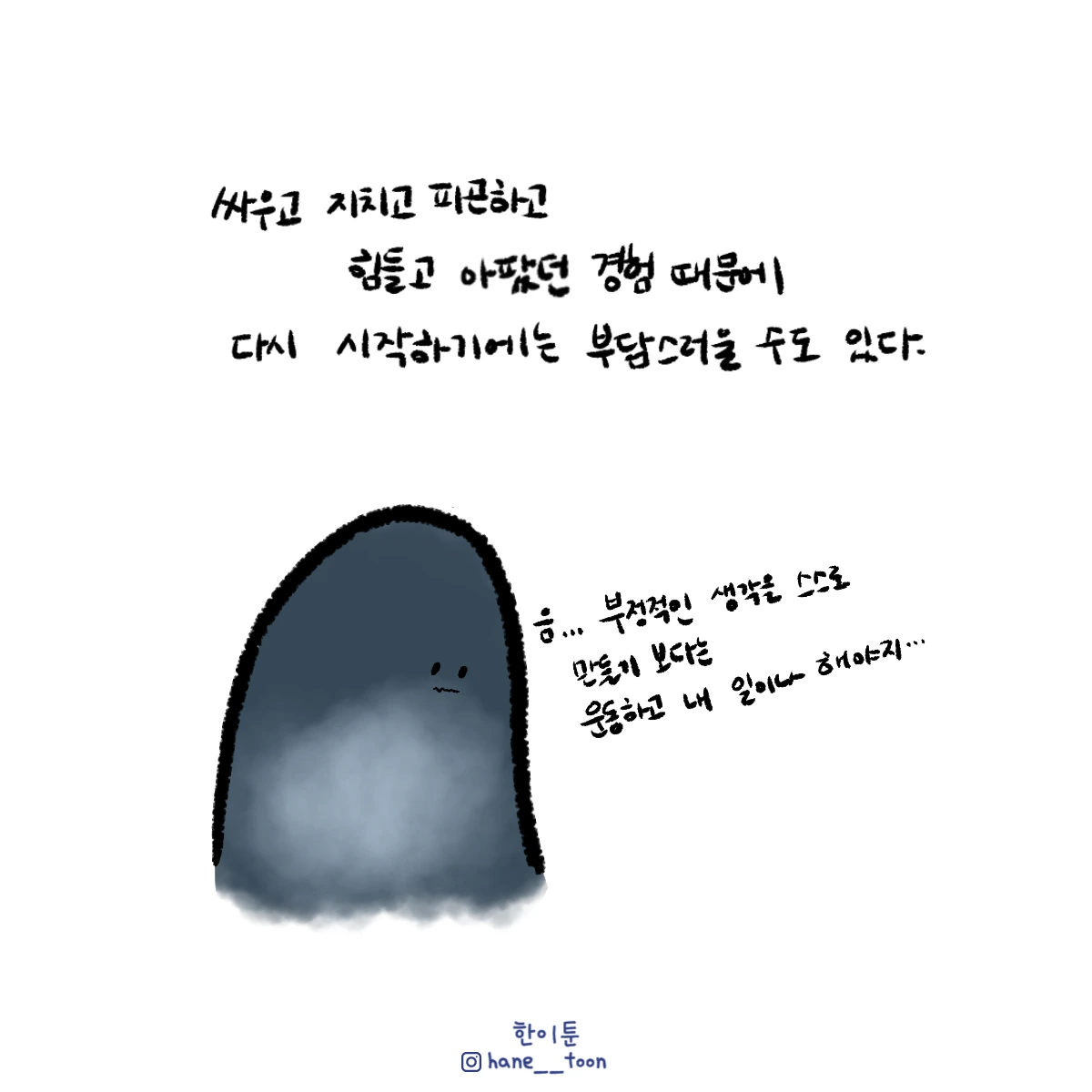 다시 시작, 계속 시작 끄적이는 일상툰, 마음에서 나온 붓으로 편히 그리기. 매주 금요일마다 <한이툰> 연재 중입니다!
