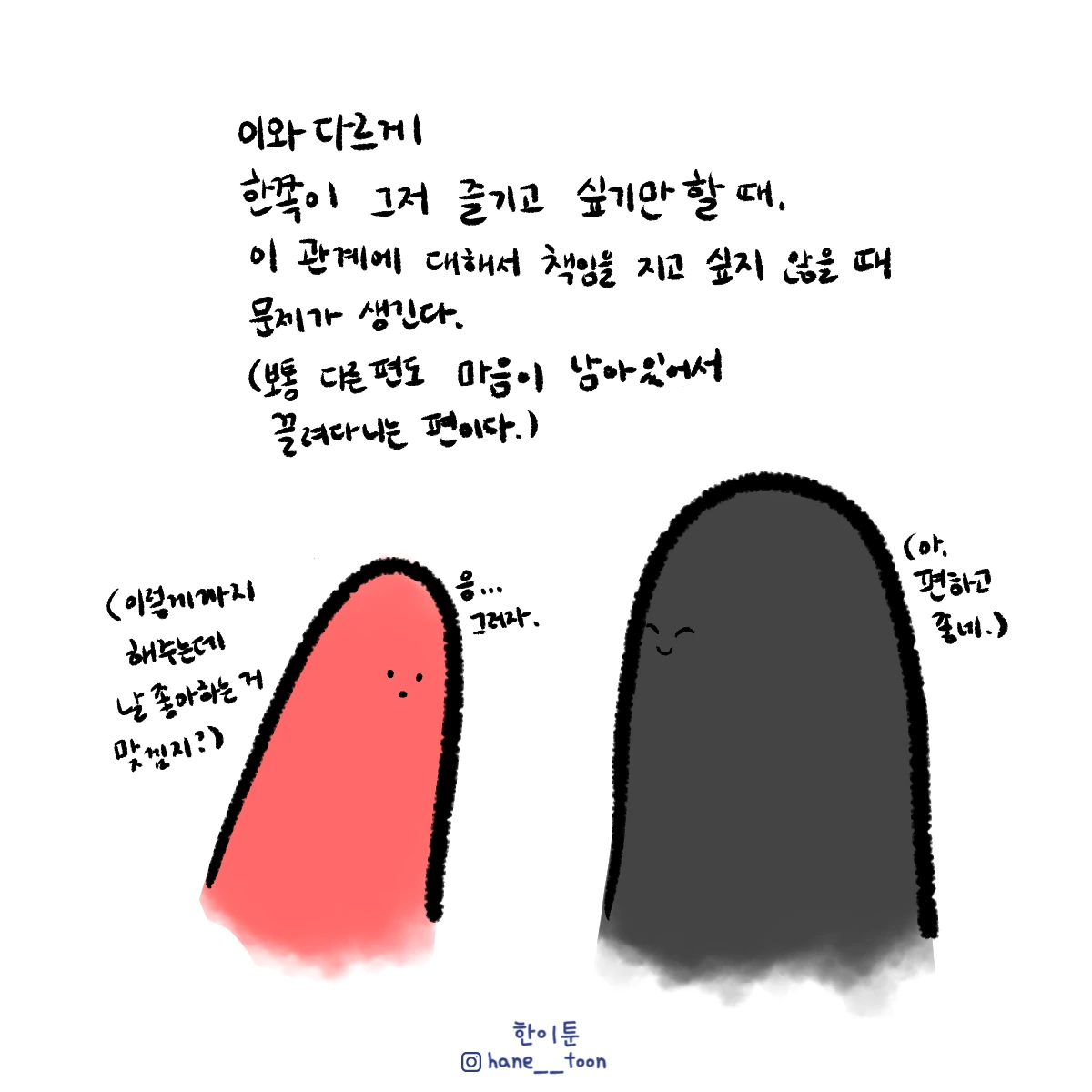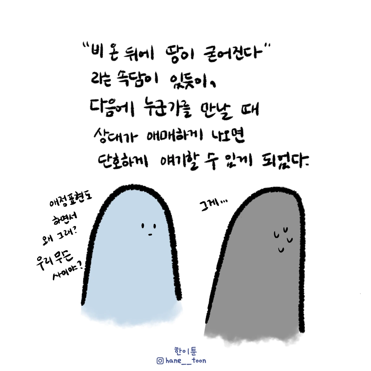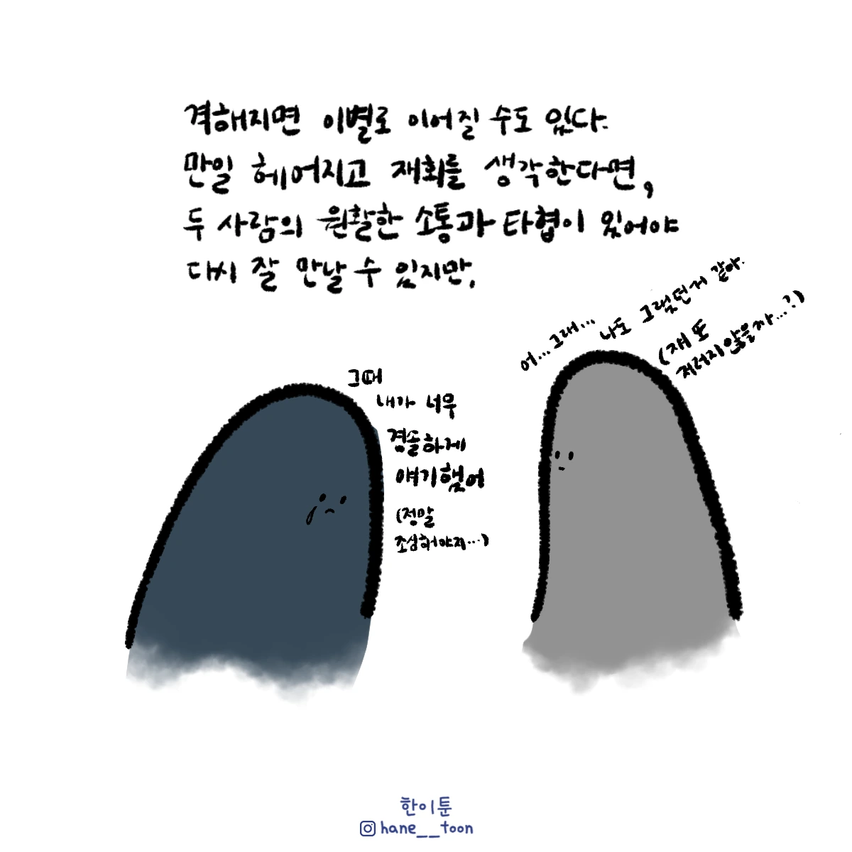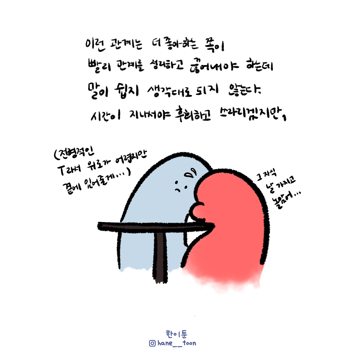 다시 시작, 계속 시작 끄적이는 일상툰, 마음에서 나온 붓으로 편히 그리기. 매주 금요일마다 <한이툰> 연재 중입니다!