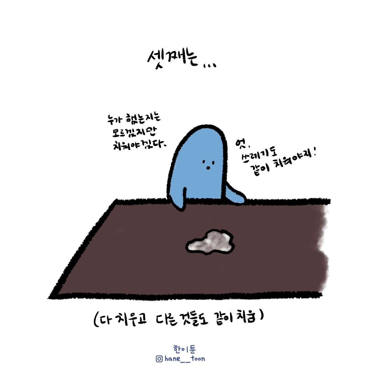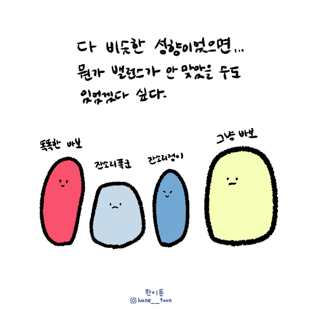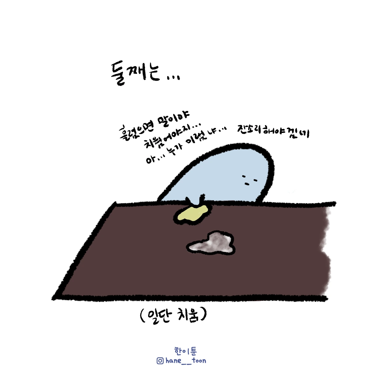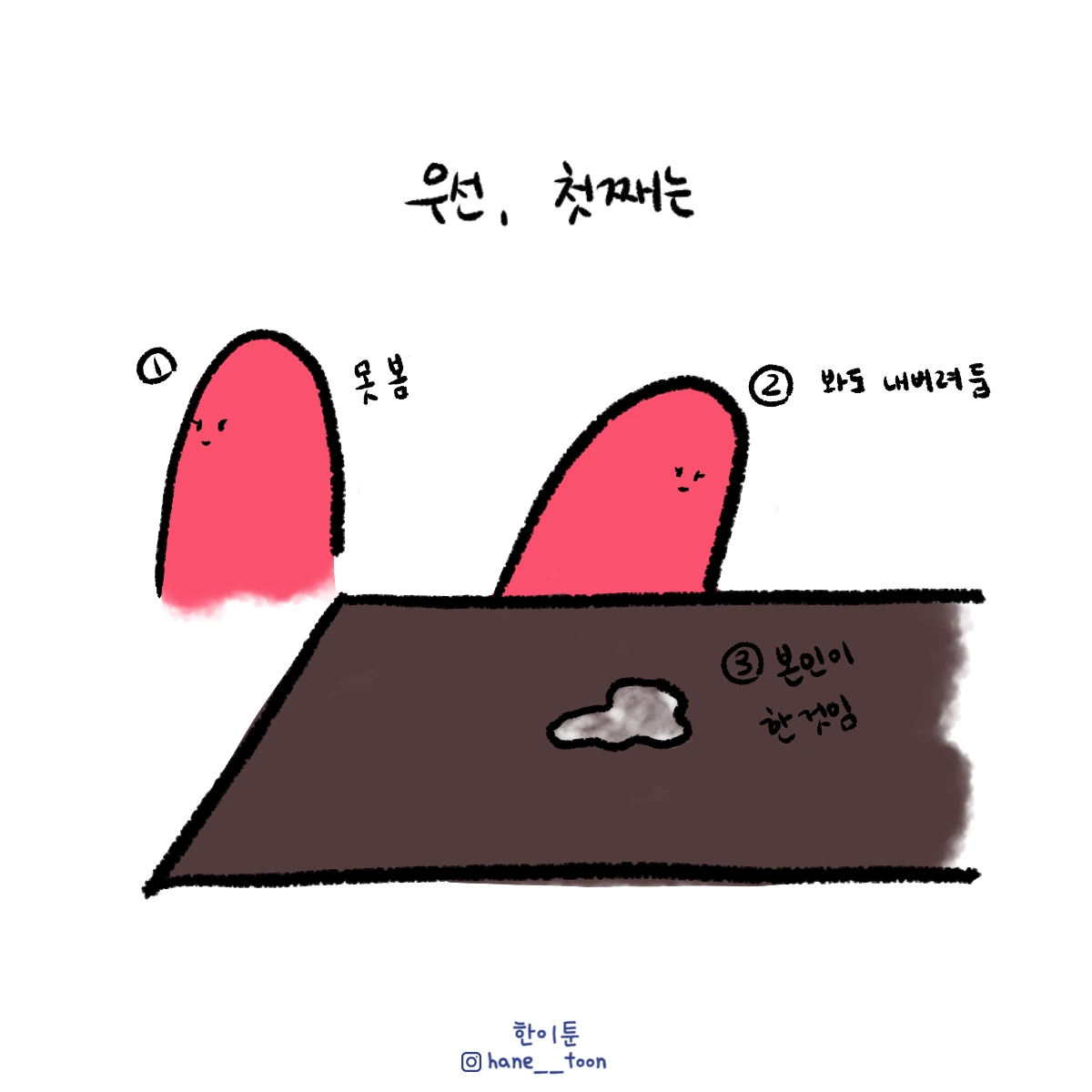 다시 시작, 계속 시작 끄적이는 일상툰, 마음에서 나온 붓으로 편히 그리기. 매주 금요일마다 <한이툰> 연재 중입니다!