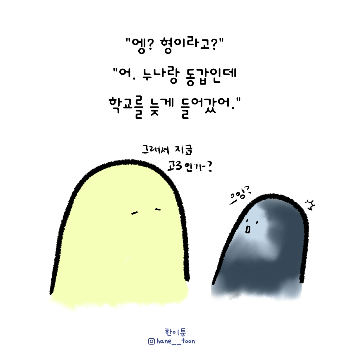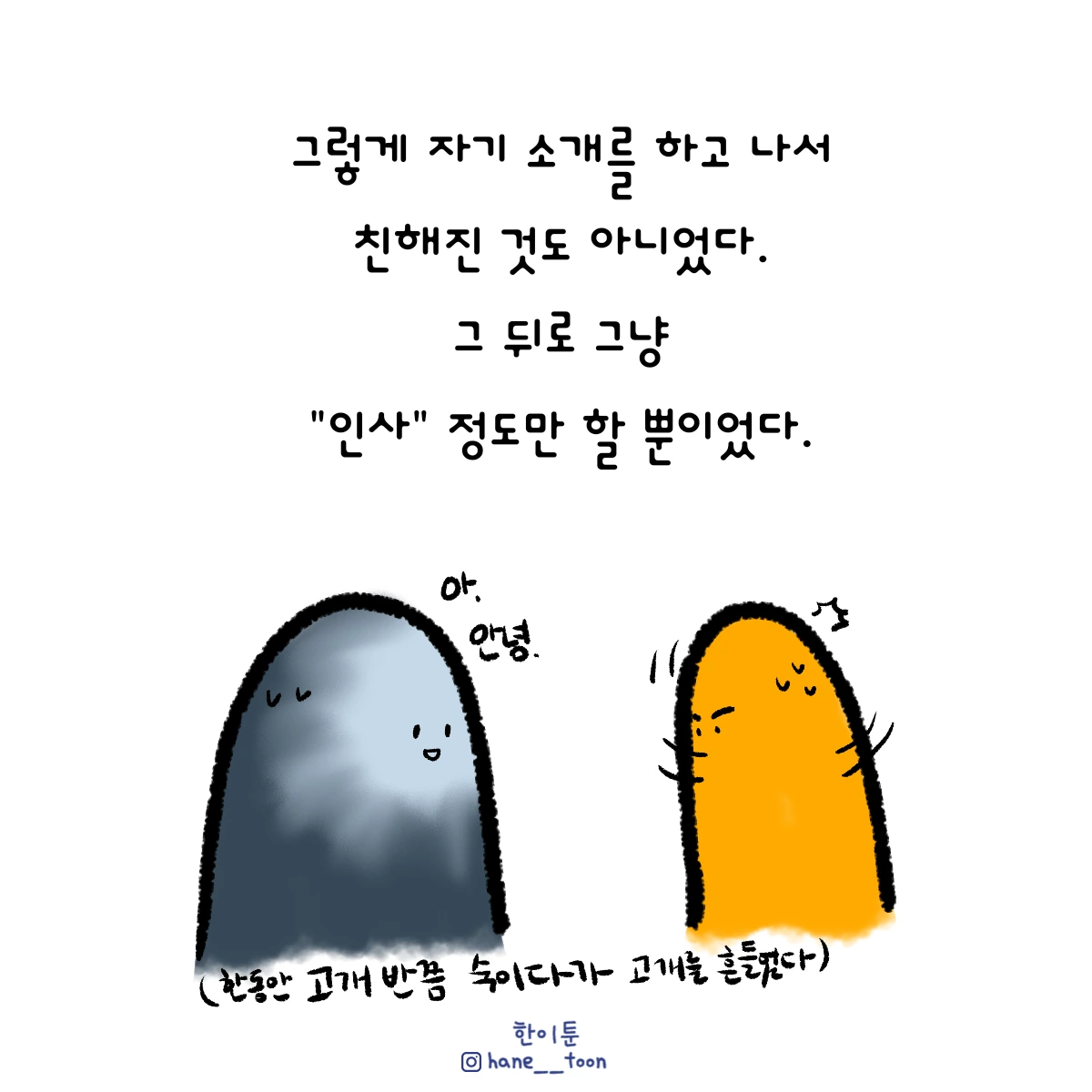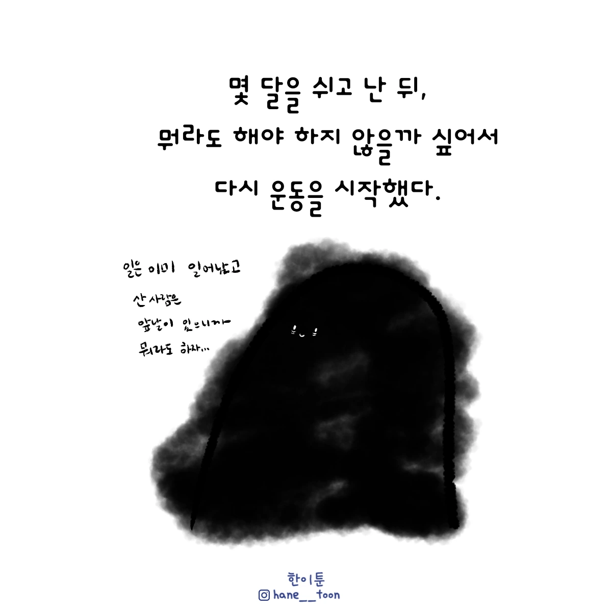 다시 시작, 계속 시작 끄적이는 일상툰, 마음에서 나온 붓으로 편히 그리기. 매주 금요일마다 <한이툰> 연재 중입니다!
