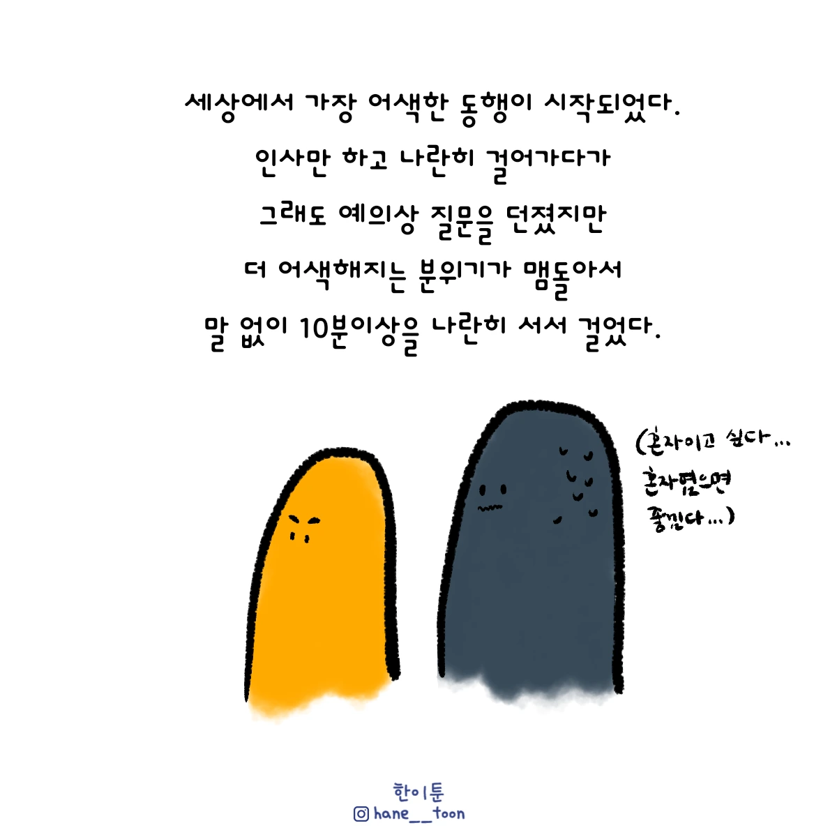 다시 시작, 계속 시작 끄적이는 일상툰, 마음에서 나온 붓으로 편히 그리기. 매주 금요일마다 <한이툰> 연재 중입니다!