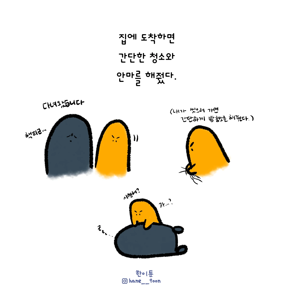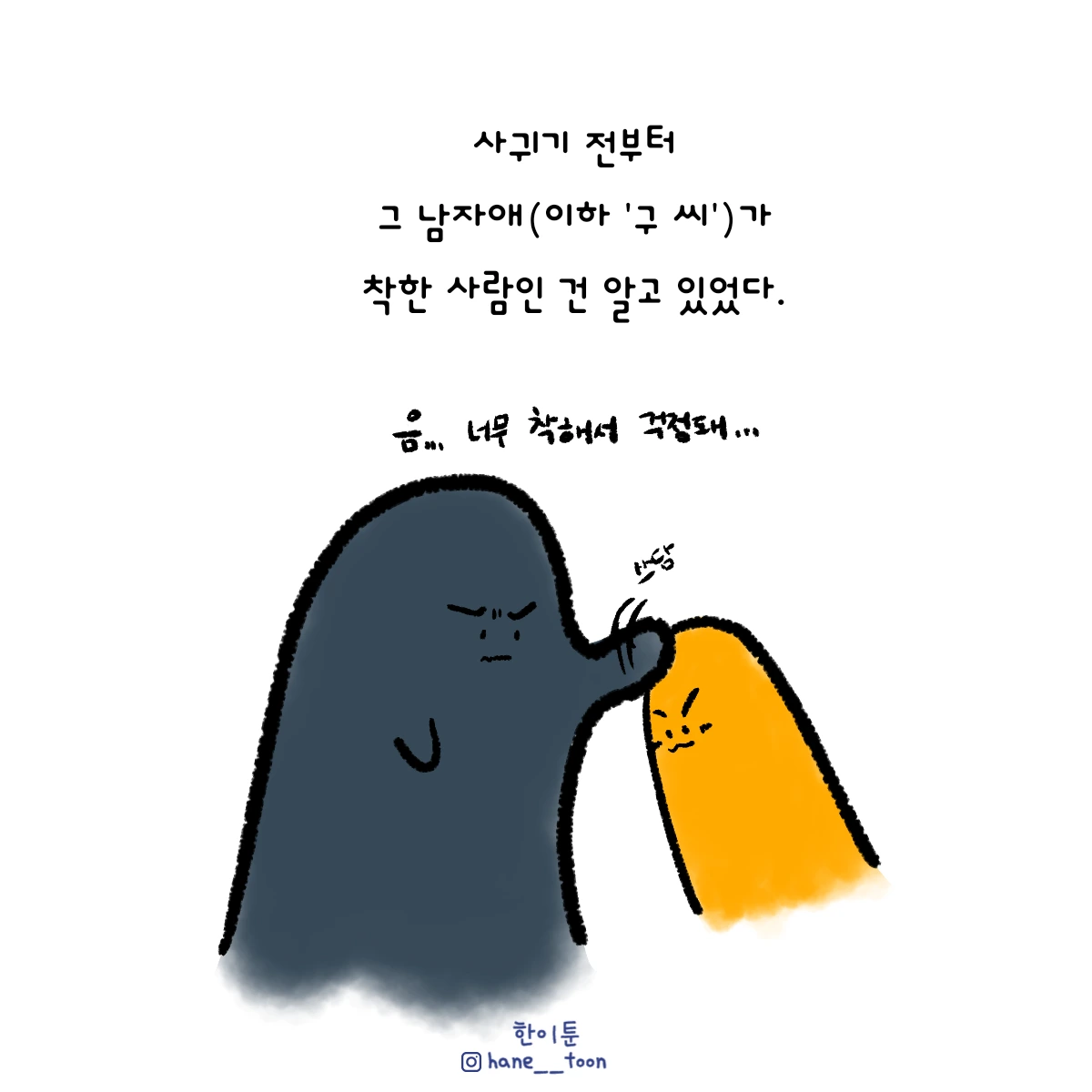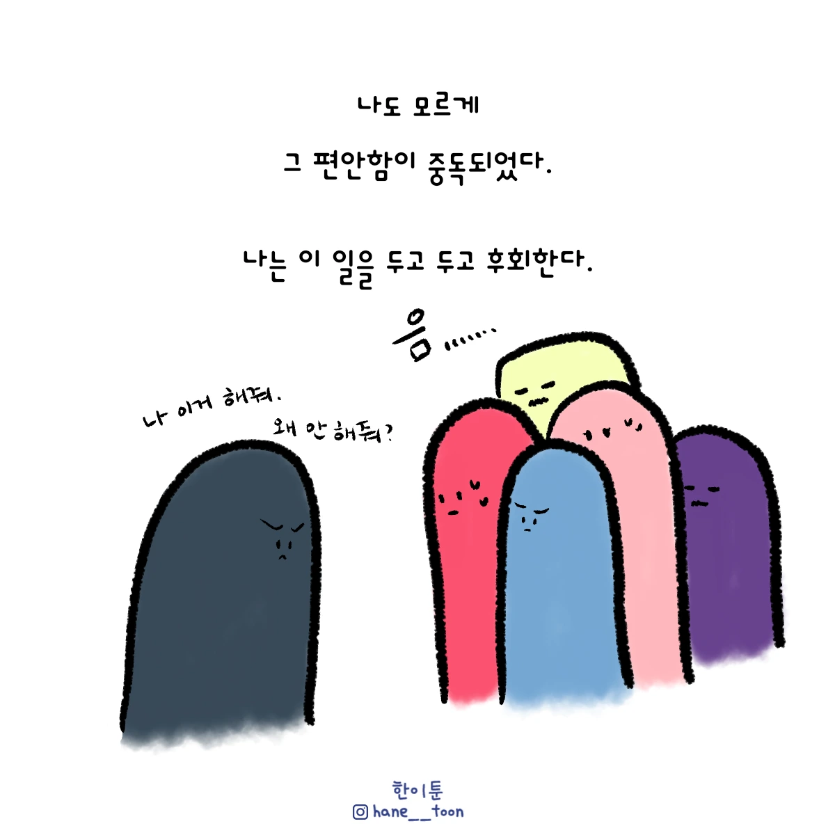 다시 시작, 계속 시작 끄적이는 일상툰, 마음에서 나온 붓으로 편히 그리기. 매주 금요일마다 <한이툰> 연재 중입니다!