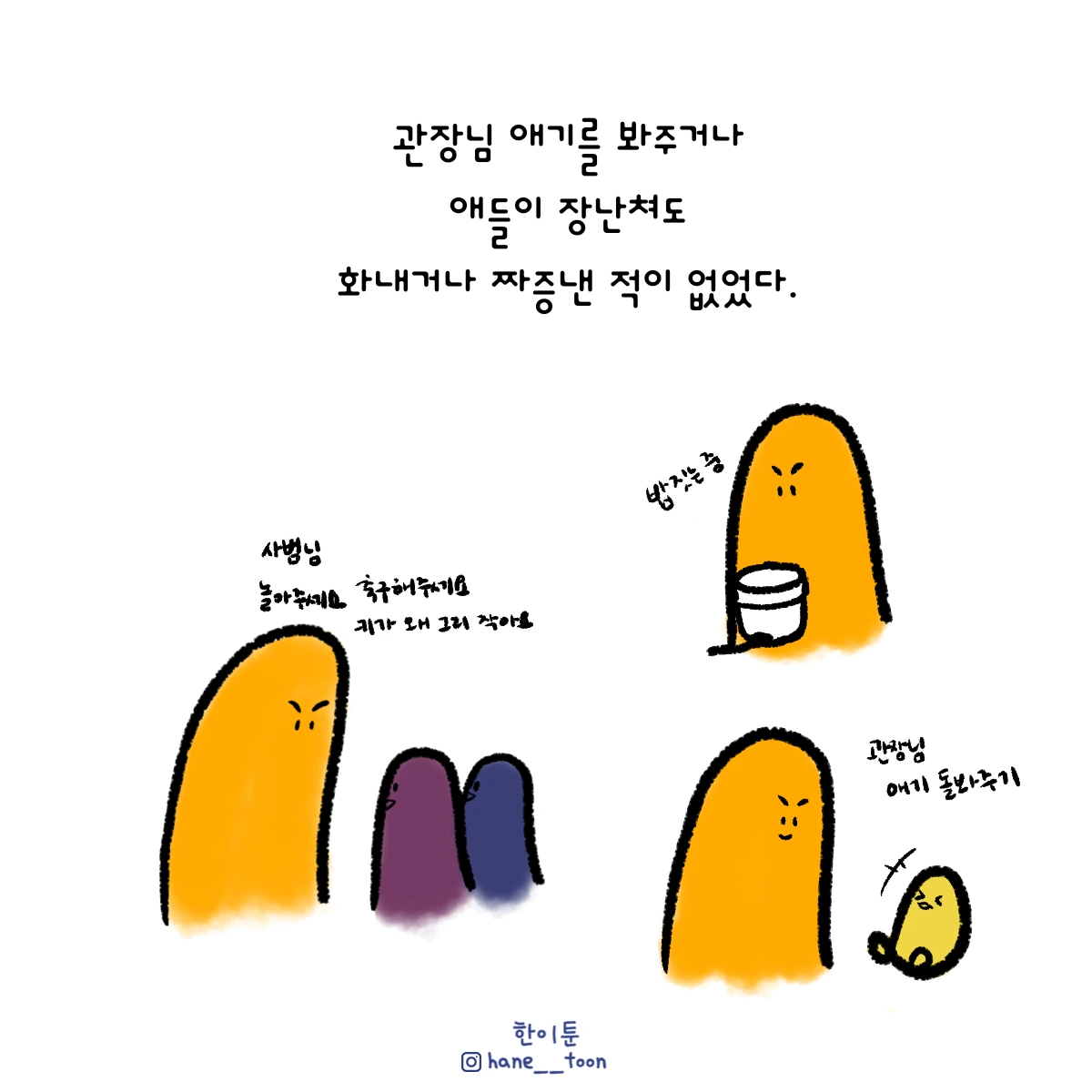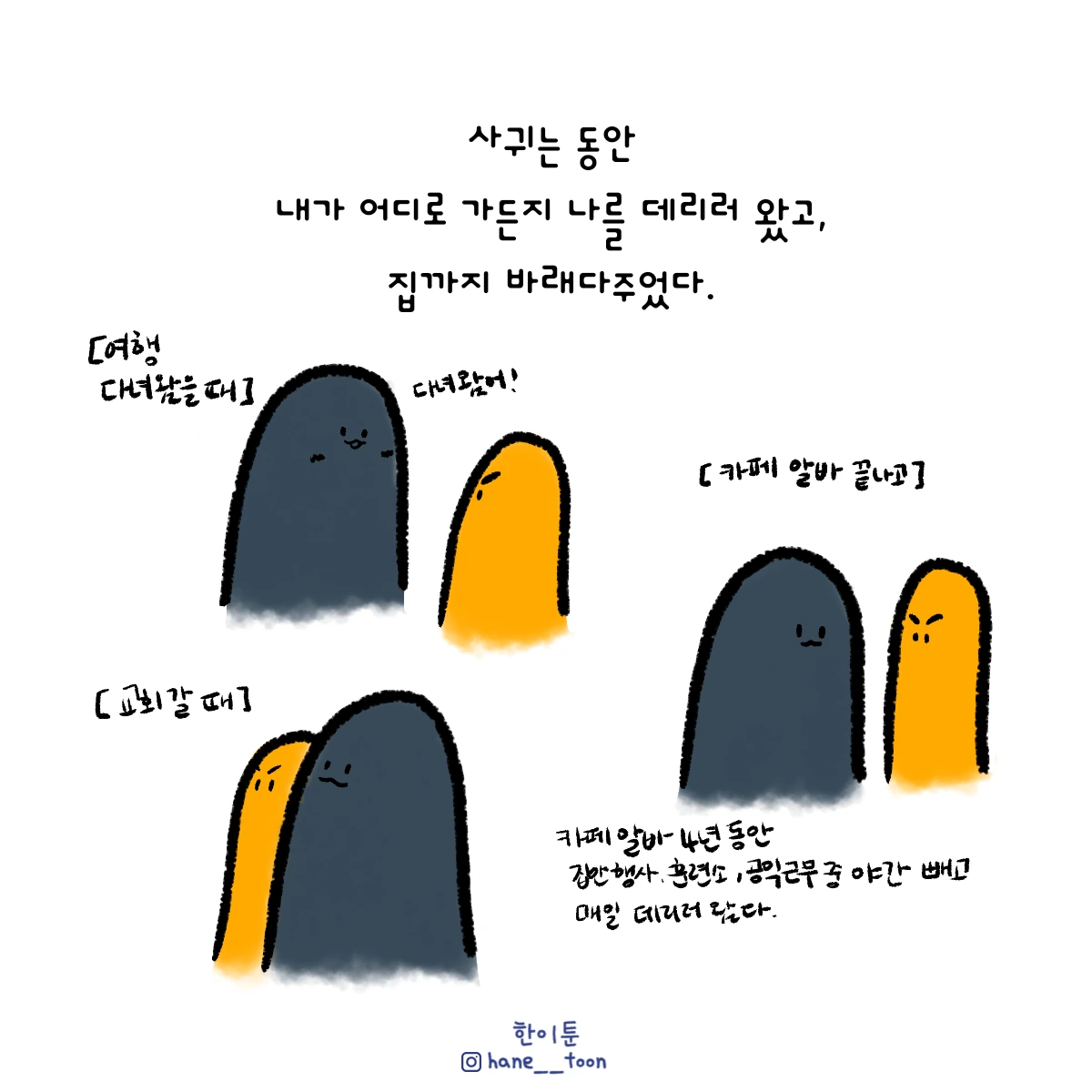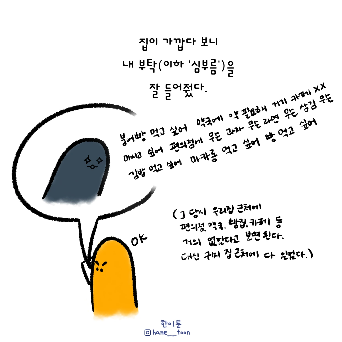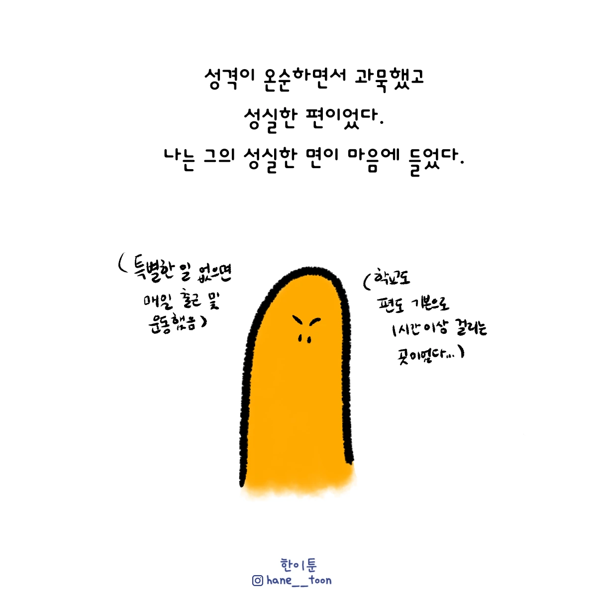 다시 시작, 계속 시작 끄적이는 일상툰, 마음에서 나온 붓으로 편히 그리기. 매주 금요일마다 <한이툰> 연재 중입니다!