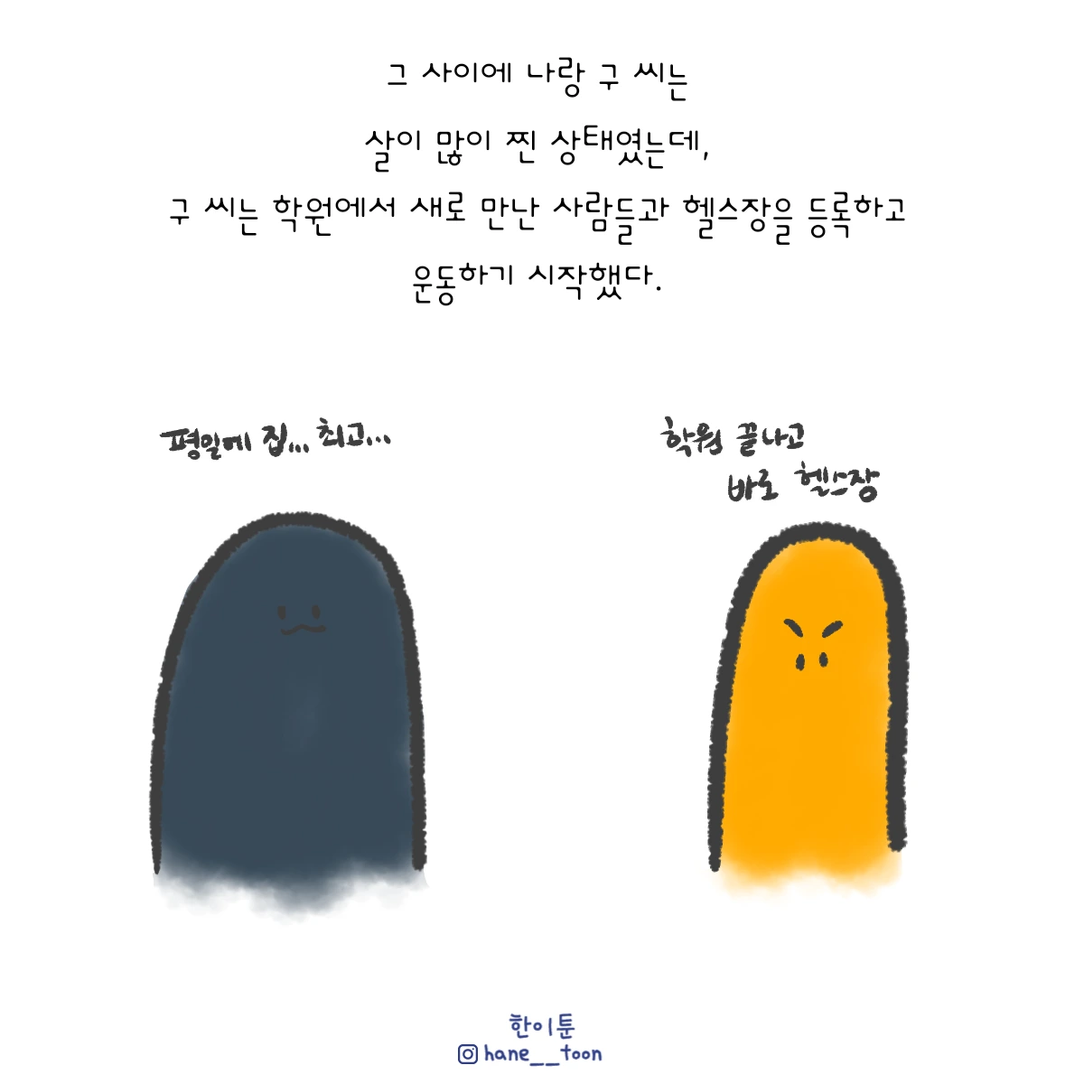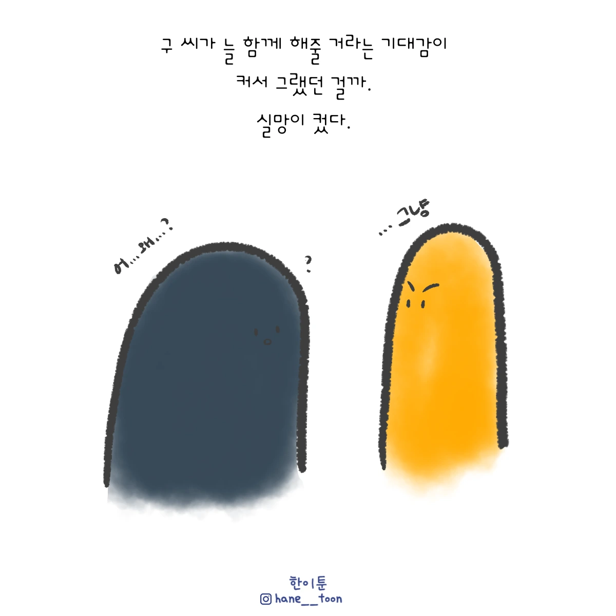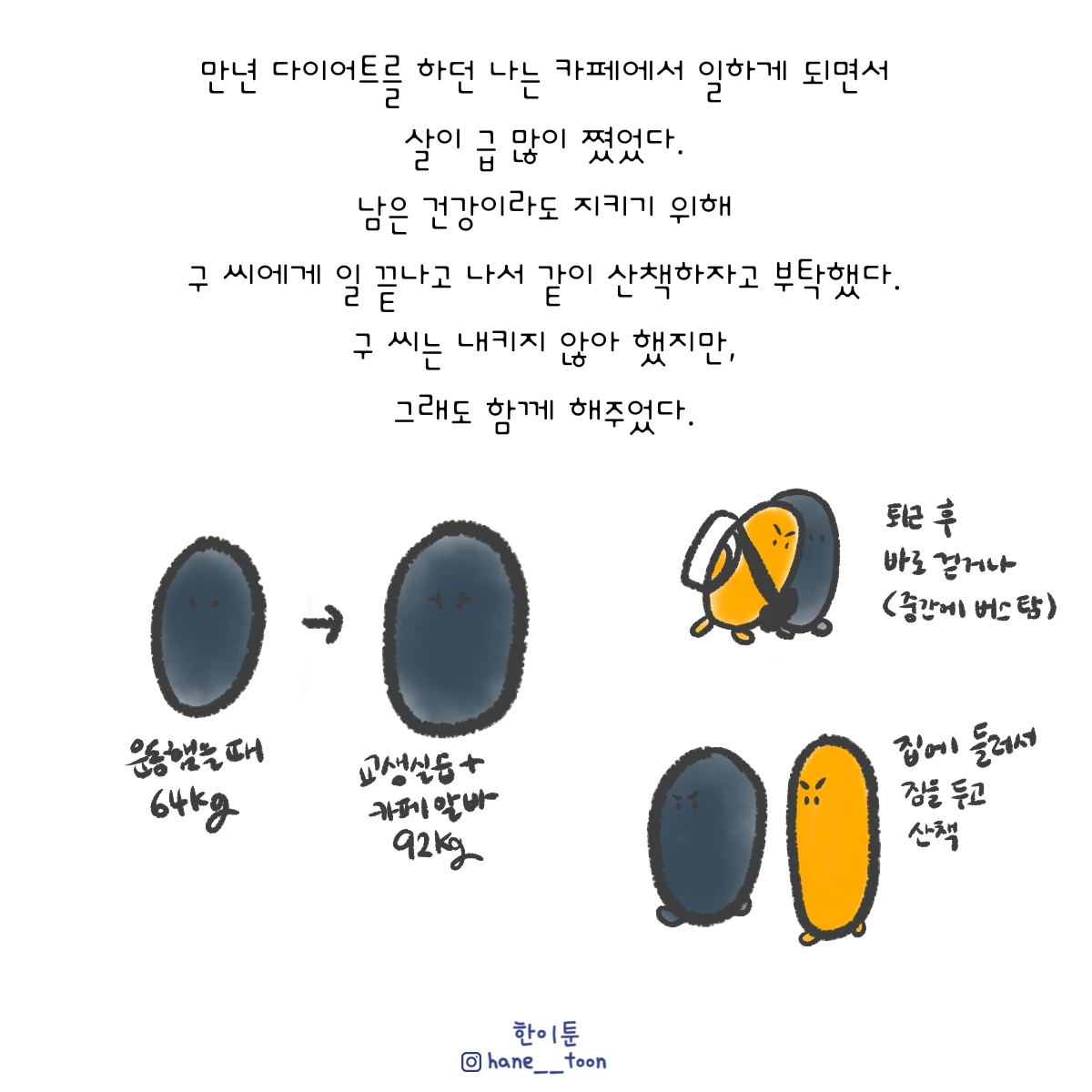 다시 시작, 계속 시작 끄적이는 일상툰, 마음에서 나온 붓으로 편히 그리기. 매주 금요일마다 <한이툰> 연재 중입니다!