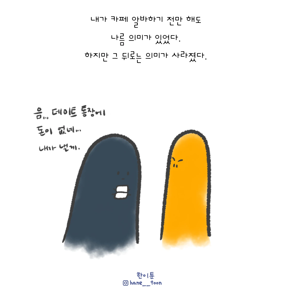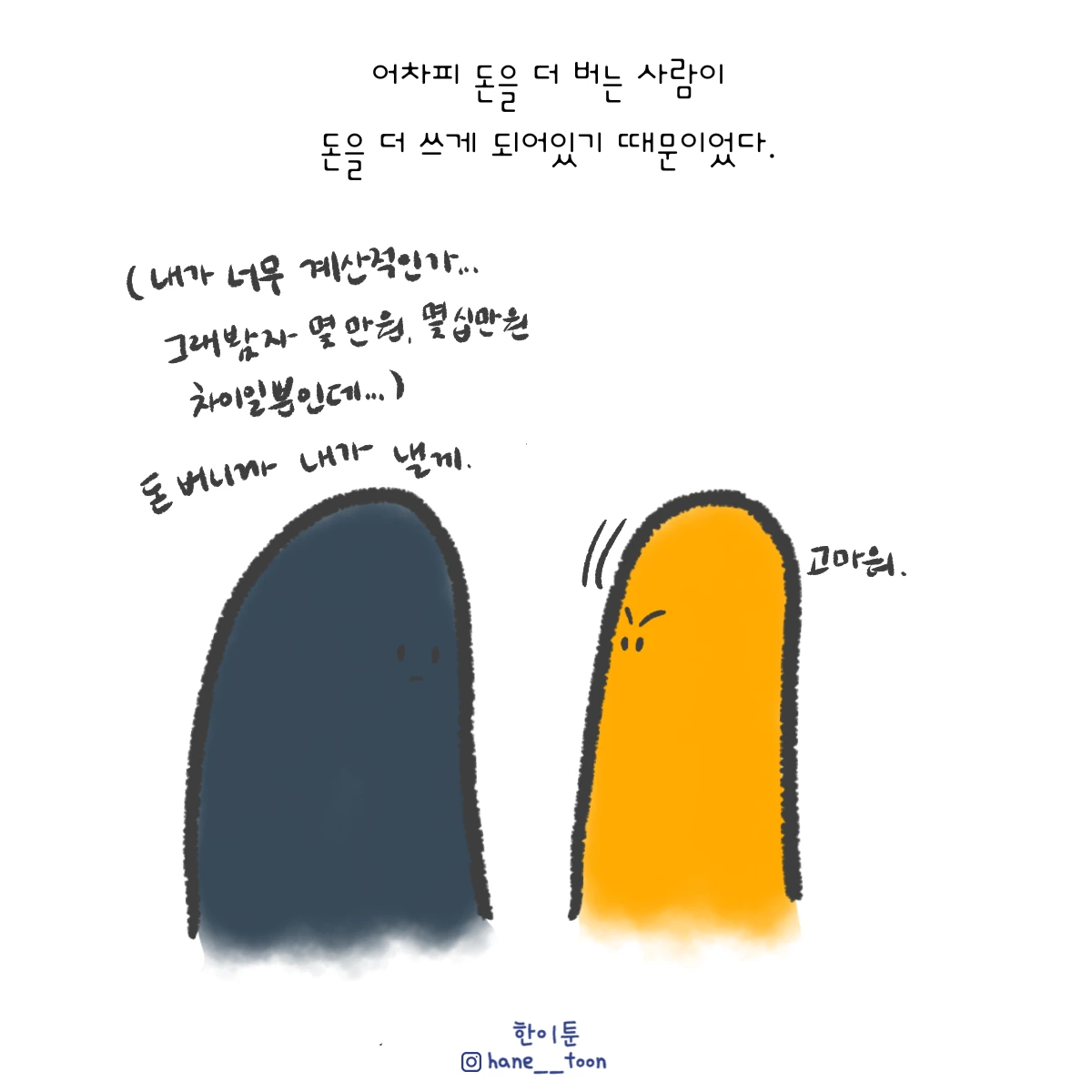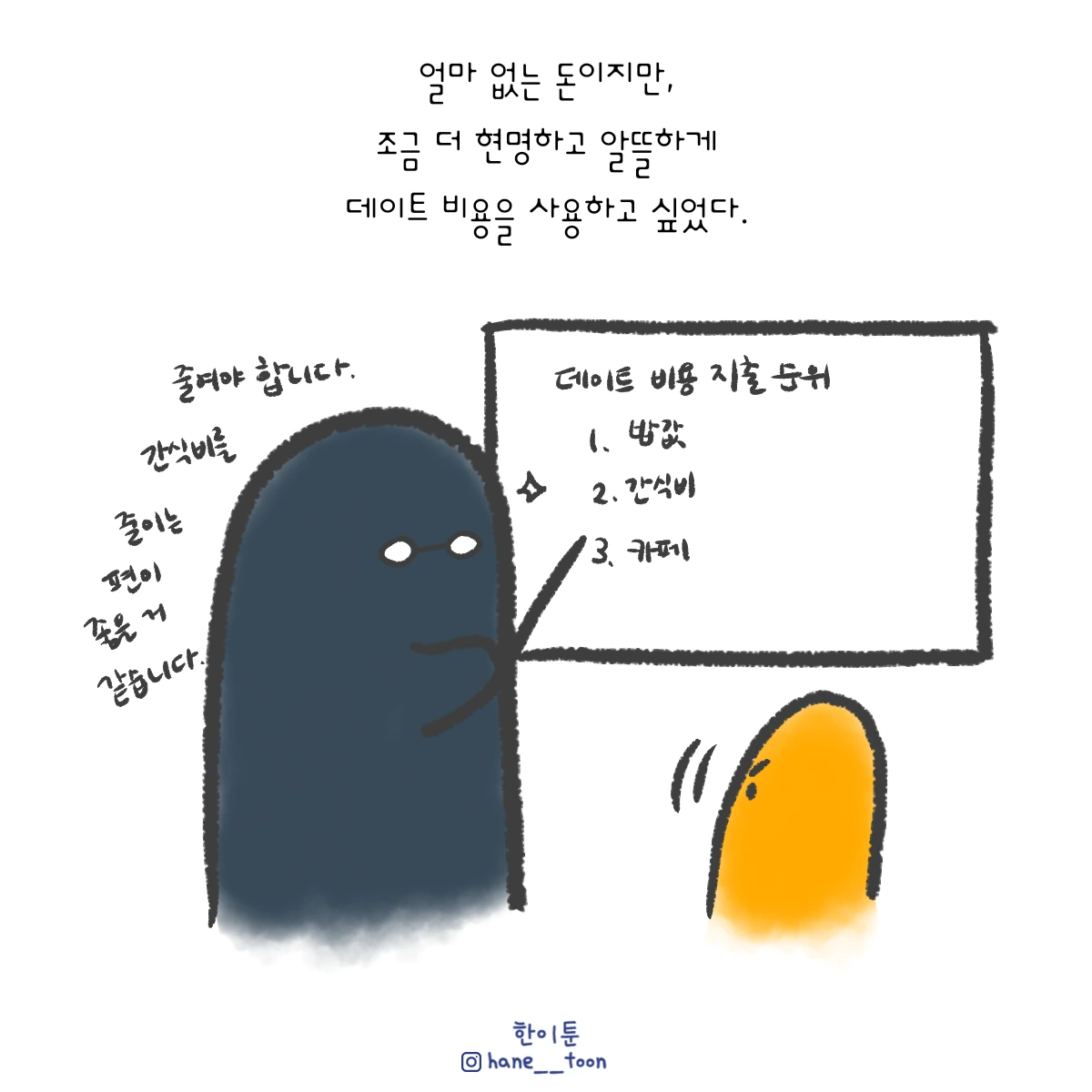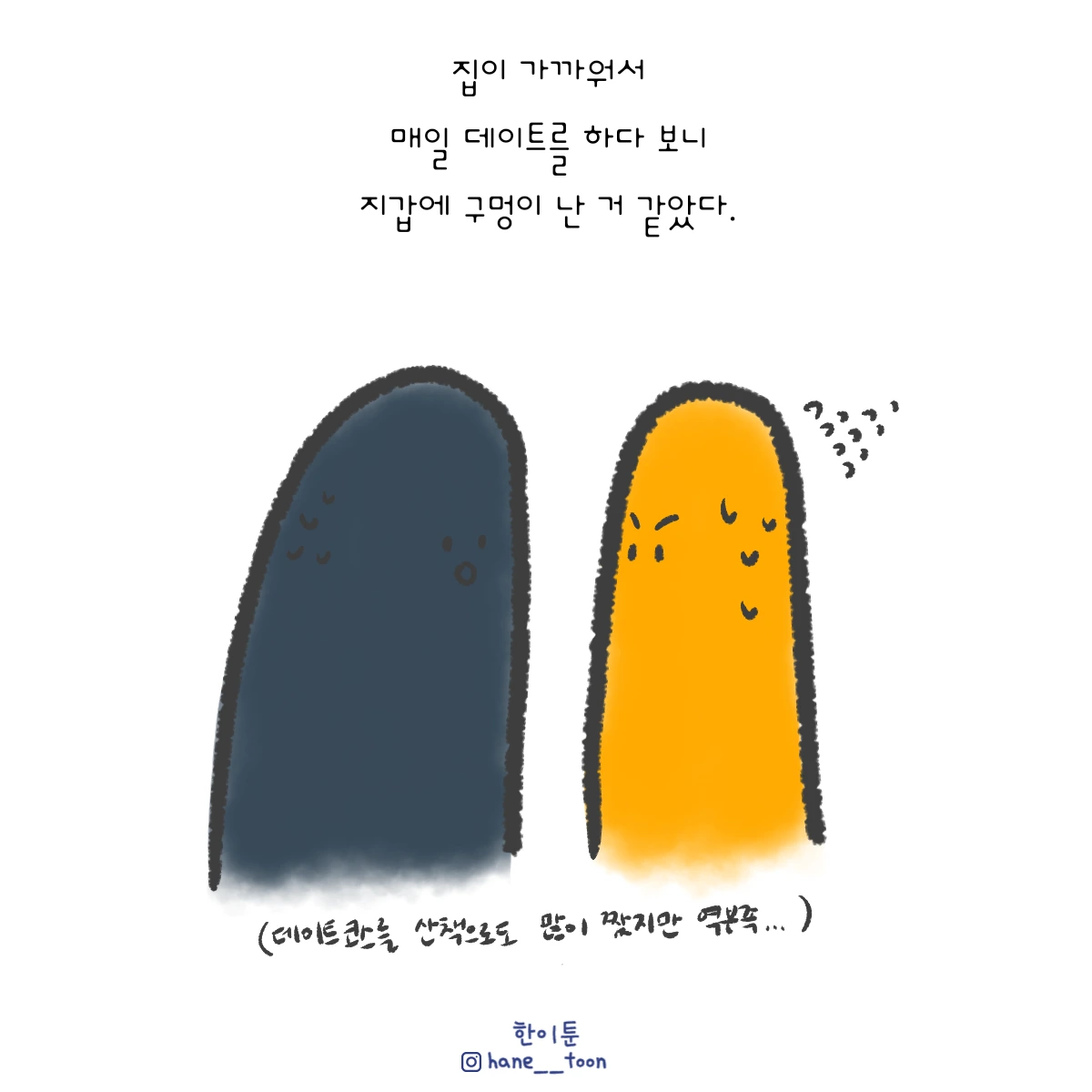 다시 시작, 계속 시작 끄적이는 일상툰, 마음에서 나온 붓으로 편히 그리기. 매주 금요일마다 <한이툰> 연재 중입니다!
