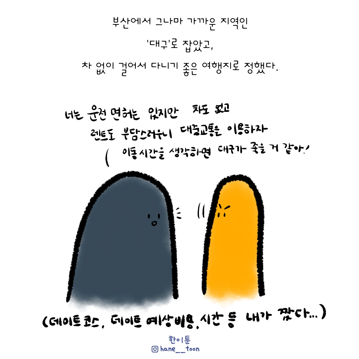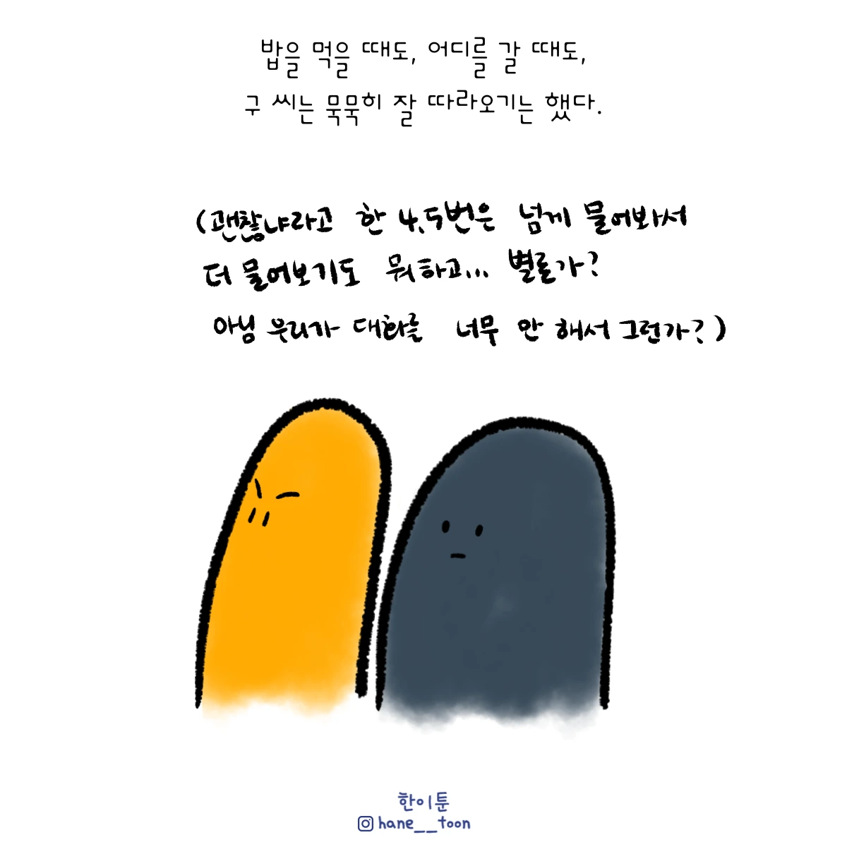 다시 시작, 계속 시작 끄적이는 일상툰, 마음에서 나온 붓으로 편히 그리기. 매주 금요일마다 <한이툰> 연재 중입니다!