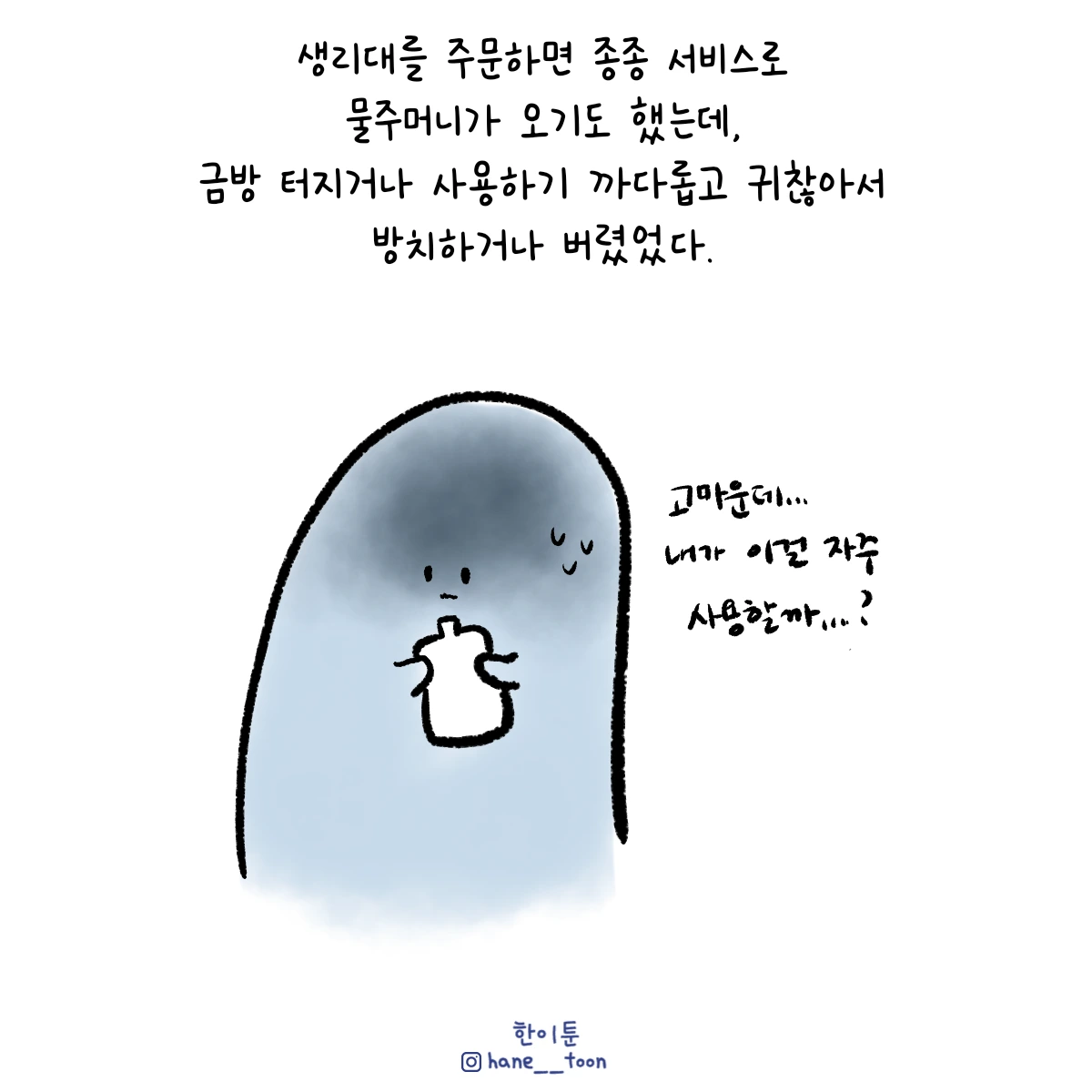 다시 시작, 계속 시작 끄적이는 일상툰, 마음에서 나온 붓으로 편히 그리기. 매주 금요일마다 <한이툰> 연재 중입니다!