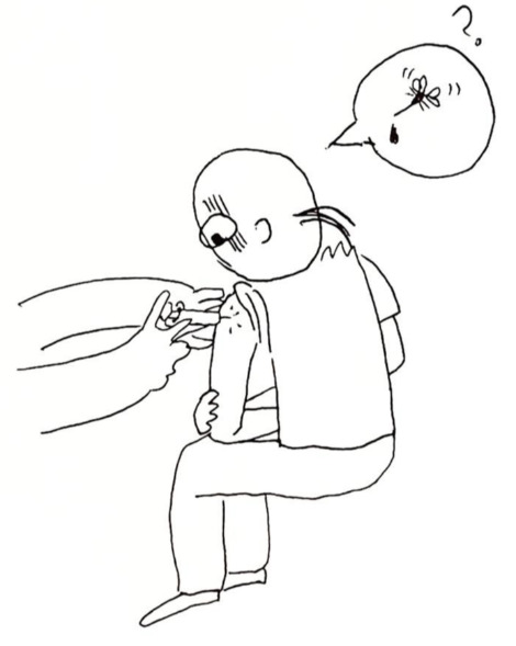 내 팔에 주삿바늘이 잽싸게 찌르고 빠졌다.