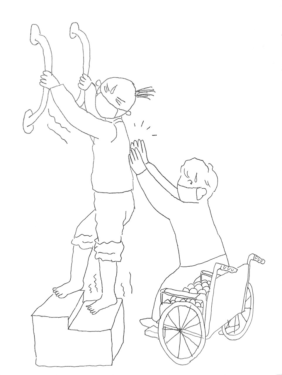 벽에 봉이 마련되어 있어도 제대로 붙잡고 있을 수 없었다.
