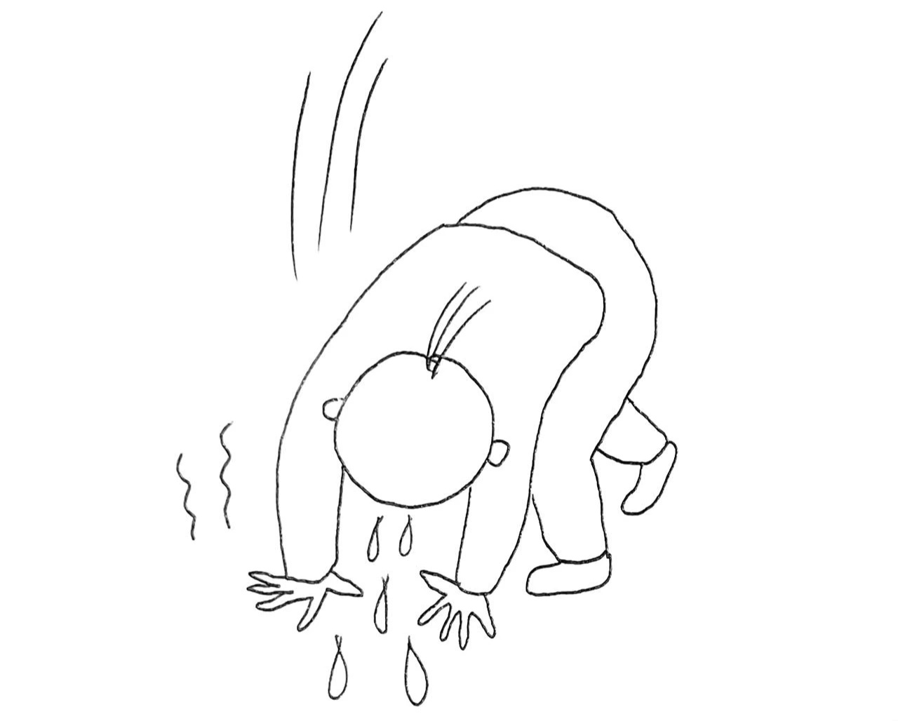 부축을 받아도 온 몸이 아래로 가라앉을 것처럼