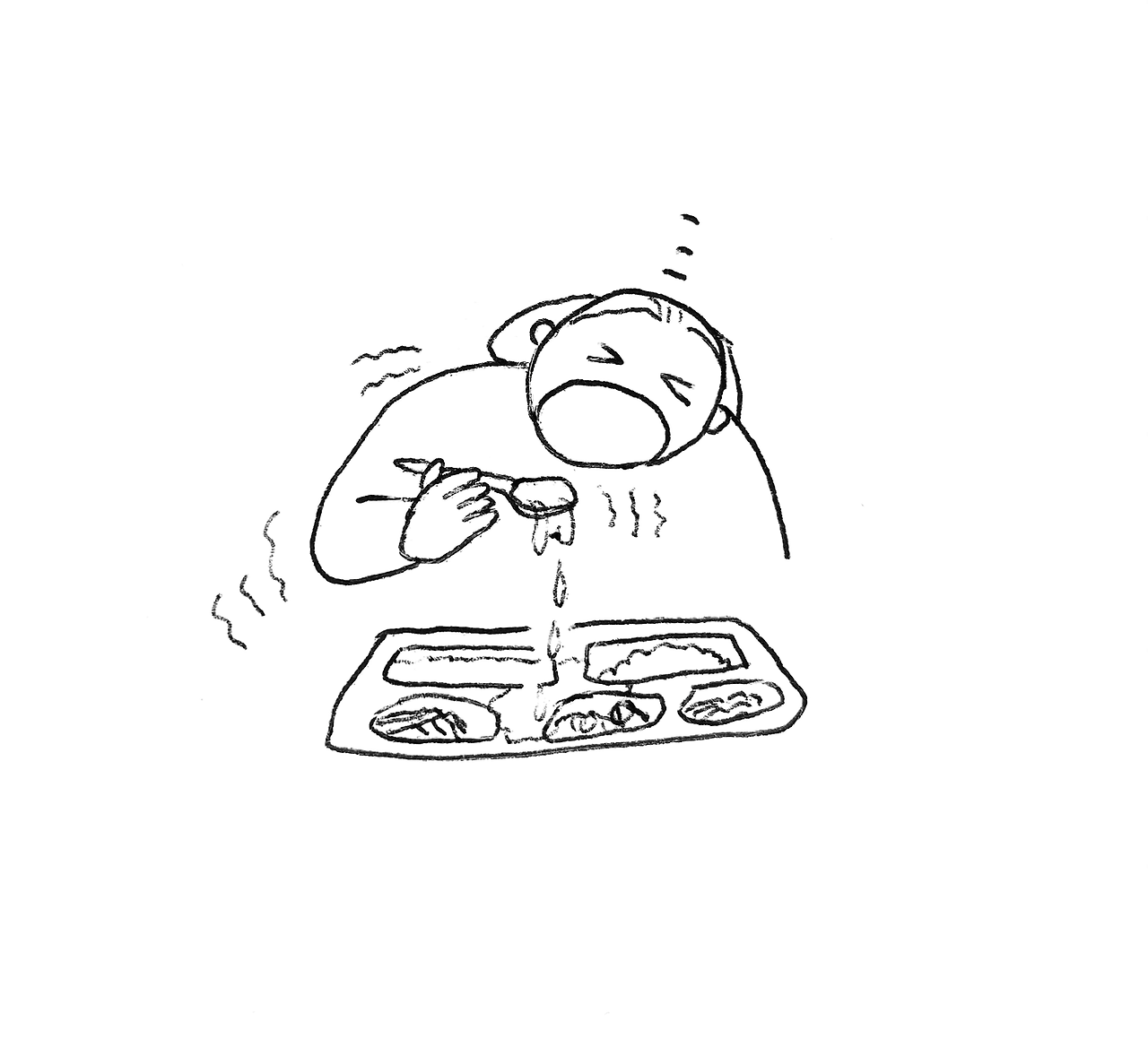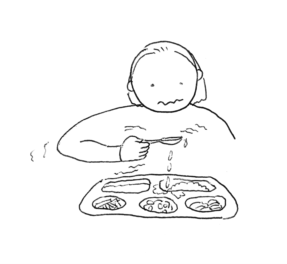 식사시간은 오래걸렸지만 아무리 느려도 괜찮았다. 누가 빨리 먹으라고 재촉하지도 않았다. 처음엔 숟가락 잡는 일이 잘 되지 않아 이틀정도 도움을 받았다. 핸드폰 사용 덕분인지 팔과 손가락 움직임이 눈에 띄게 돌아왔다. 숟가락 끝이 덜덜덜 떨리는 바람에 얼마 뜨지도 못한 국물을 뚝뚝뚝 식판 아래로 흘렸다. 멸치, 파프리카 조각을 집고 싶은데 젓가락은 좀더 시간이 필요했다.