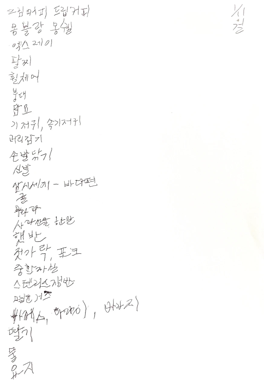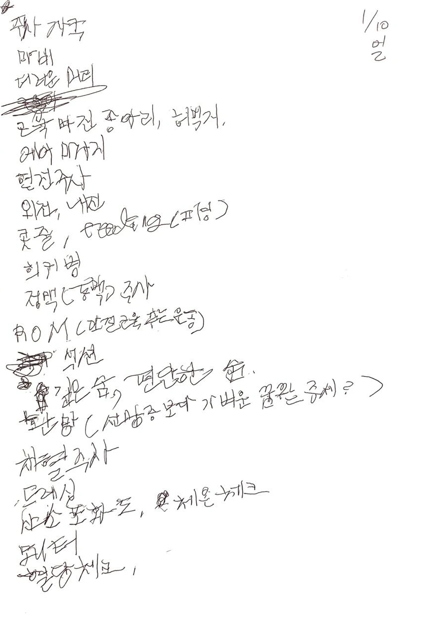 그동안 천장만 바라보며 수없이 들려오던 단어들을 글씨로 뱉어냈다. 마비가 덜 풀린 손으로.
