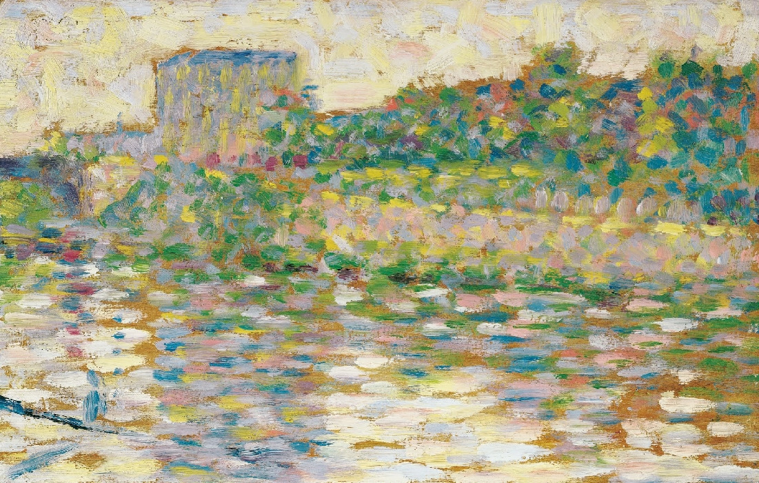 조르주 쇠라는 신인상주의 대표 화가로 점묘법을 발전시킨 인물이다. 이대원 화백의 다채로운 색감과 짧은 붓 터치는 보는 이로 하여금 쇠라의 점묘법을 떠올리게 하는데, 쇠라의 <쿠르브부아의 센 강>을 보니 이대원 화백의 작품처럼 밝고 짧은 터치로 이뤄져 있다.
