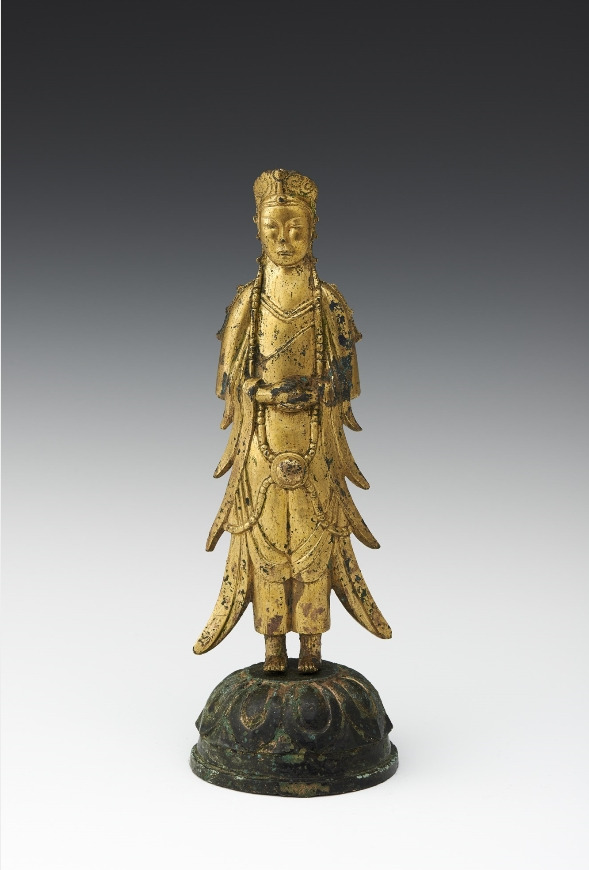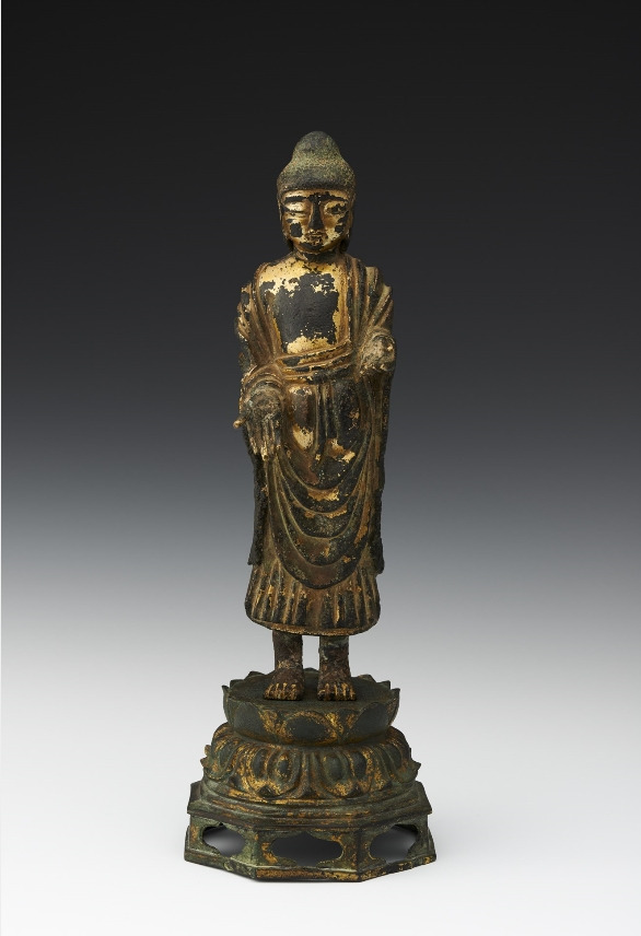 <금동여래입상>은 통일신라시대의 불상으로 7세기 중후반에 제작된 것으로 추청 된다. 미술사적 가치를 인정받고 보물 제284호로 지정되었으며, 출토지에 관한 정보는 명확하게 밝혀지지 않았다. 도금이 벗겨진 흔적이 있으나 부처와 대좌의 형체가 비교적 손상 없이 잘 관리되어 있다.