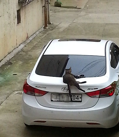 그 누구보다 골목을 자기 집 안방처럼, 주차된 차를 자기 집 소파처럼 이용하는 누군가를 발견했다.