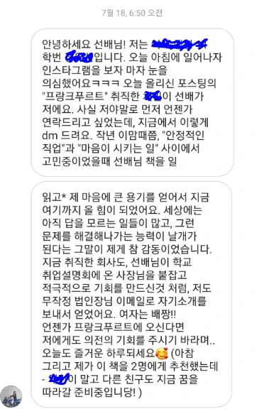두달 전, 링크드인으로 받은 아래 메시지를 인스타그램에 올렸더니, 더 많은 분들이 DM을 주셨어요.