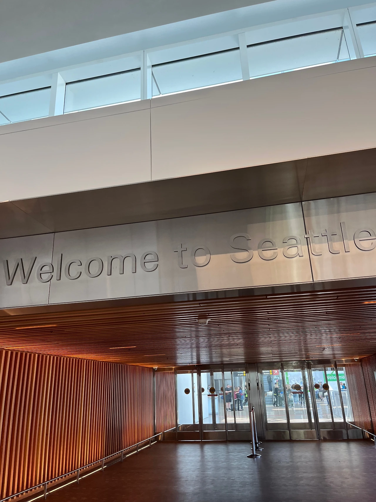 맑고 푸른 하늘 아래 씨애틀 타코마 국제공항. 미국의 여러 공항이 열악하다는 수많은 평을 잊게 할 정도로, 이 공항은 깨끗하고 쾌적하며 모던한 환경을 보였다. 짐을 찾으러 가는 길 상단에 너무나 평범하면서도 성의 없어 보이는 환영의 문구 한 구절,