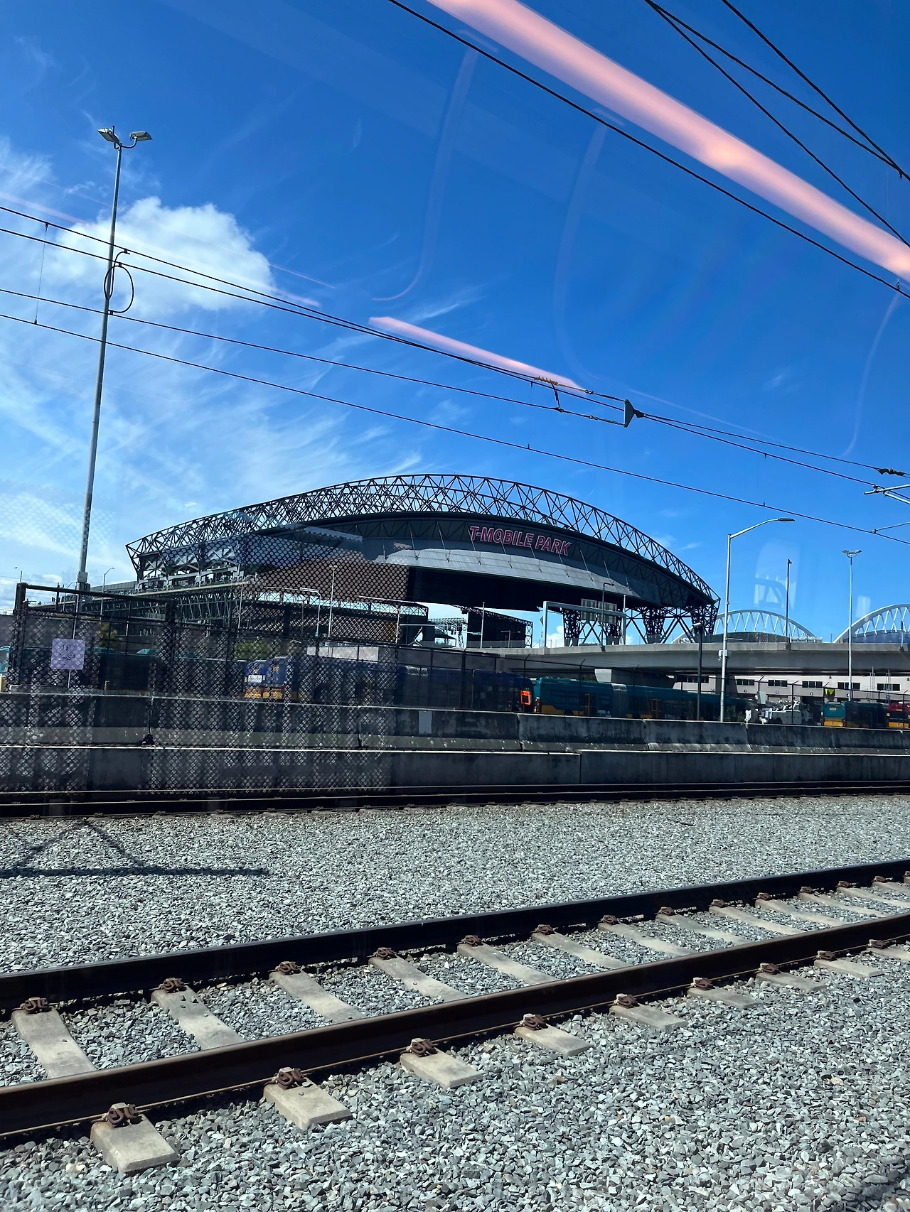 전철 링크의 내부구조는 우리나라 지하철과 유사하다. 몇 해 전 샌프란시스코를 여행할 때 탑승했던 바트BART는 열차 진행방향과 같거나 반대인 방향으로, 우리나라의 기차처럼 좌석이 이뤄져 있었는데, 이곳 링크는 한국의 지하철처럼 열차 측면에 탑승하여 측면으로 이동하는 식이라 이질감은 덜하다. 쾌청한 하늘과 초록빛 잎사귀가 돋아난 가로수를 넋 놓고 바라보며 이동하던 찰나, 열차 진행방향의 좌측으로 거대한 철골건축물이 나타났다. 티-모바일 파크T-MOBILE PARK라는 타이틀을 내비치는 그 건물, 보자마자 미식축구경기장이 아닐까 싶어 즉시 지도를 찾아본 결과, 그것은 내가 사랑해 마다 않는 야구장이 아니던가. 씨애틀의 메이저리그 야구단 씨애틀 매리너스Seattle Mariners의 홈구장이라는 사실을 깨닫는다.