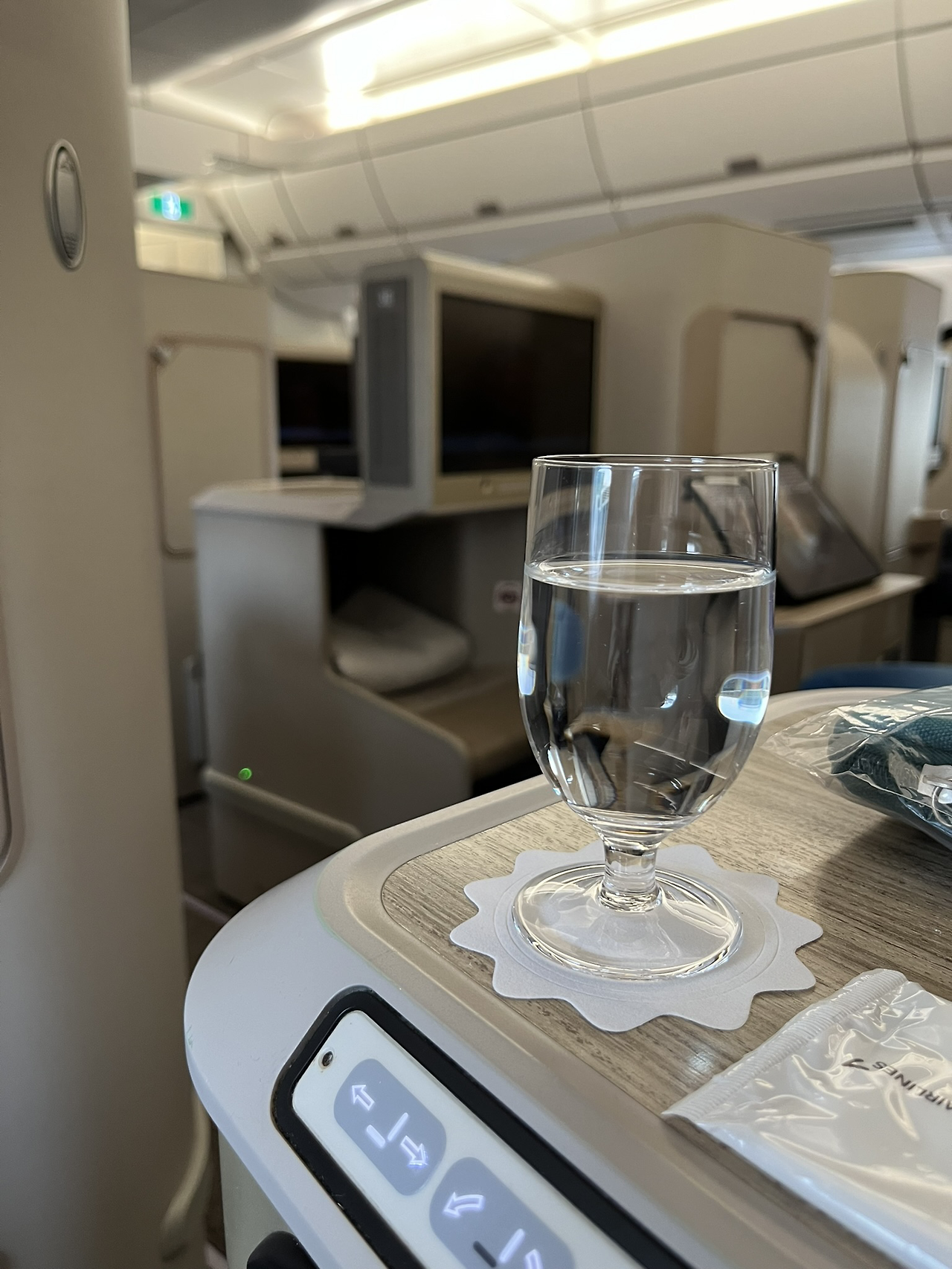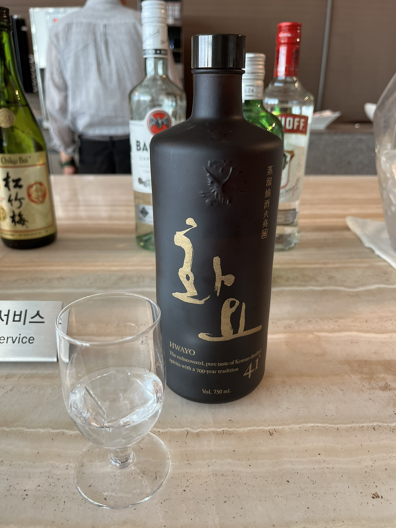 현재시각 18:04. 이제 마지막 잔으로 한국의 혼을 내 몸 안에 담아 가 보자. 증류식 소주 화요 41을 얼음과 함께 온더락으로 마련하여 마지막으로 비행기를 구경하며 쌀 내음을 음미하던 찰나.. 내 귀를 꽉 막아둔 노이즈 캔슬링 이어폰을 뚫고 어디선가 내 이름을 부르는 소리가 꽂혔다.