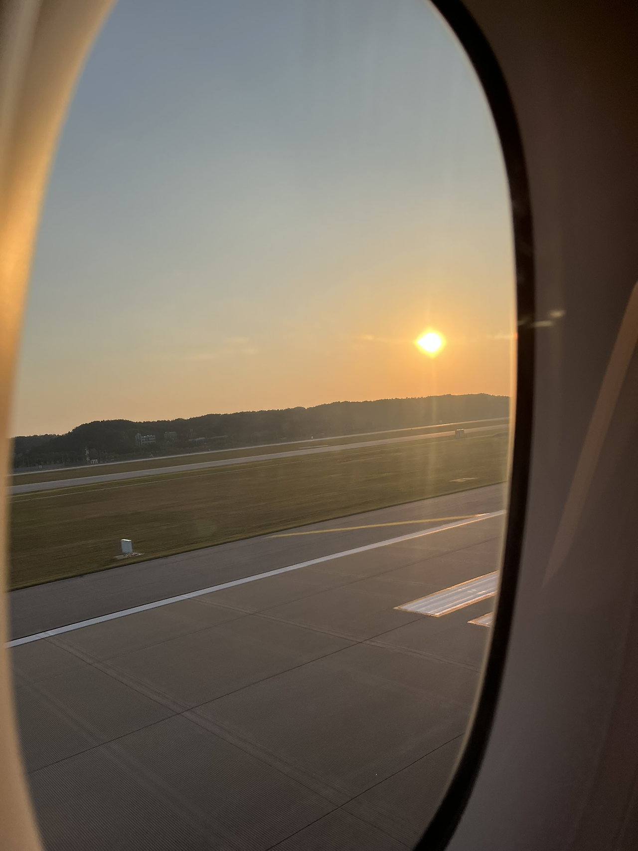 시계는 18시 12분을 가리키고 있었고, 내 비행기 표에 적힌 이륙시간은 18:15. 이런 멍청이! 18시 15분을 혼자 ‘탑승시작 시간’이라 인지하고 그간 그렇게 술을 쳐마시며 바보짓을 하고 있었다. 허둥지둥 따라둔 화요를 원샷하고(?) 짐을 챙겨 호다다닥 탑승구를 향해 달리기 시작했다(이 와중에 술은 또 넘어가냐?). 내 생애 파이널 콜을 들으며, 공항 내에 쩌렁쩌렁 이름이 울려 퍼지는 수치스런 영광을 구하다니.. 여행 시작부터 아주 제대로 꼬였다. 다행스럽게도 라운지와 탑승구가 가까운 거리여서 18시 14분에 탑승에 성공. 민망스럽게도 나를 제외한 모든 승객분들께서 평온히 벨트를 매고 앞만 바라보고 계셨다, 허허. 그나마 좌석이 1인석이라 옆으로 아무도 없었기에 덜 쪽팔렸지. 허둥지둥 들고뛰고 했더니 5월의 첫날인데도 땀이 비 오듯 흘렀고, 그새 승무원께서는 내게 다가와,