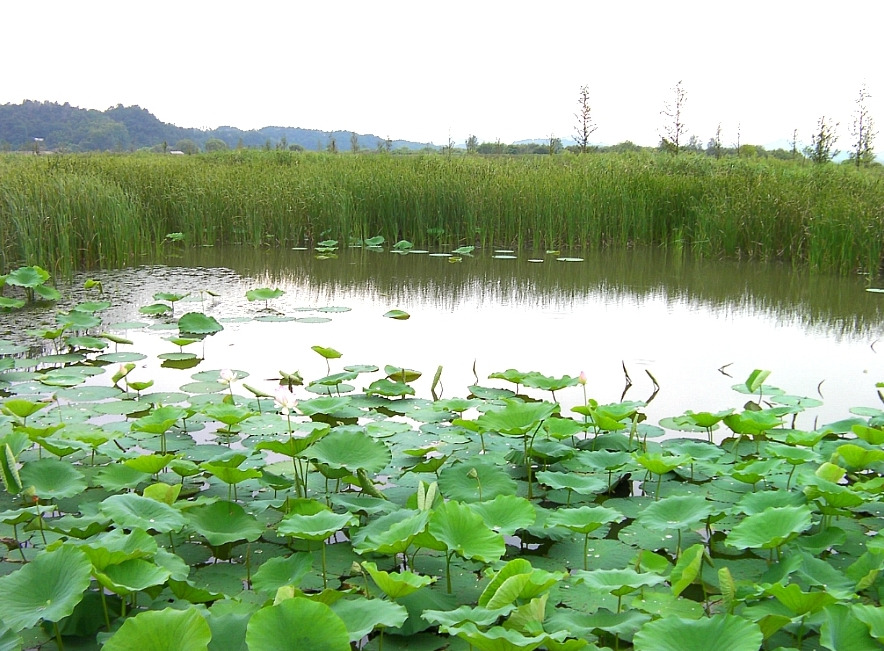 성당포구 작은 강 건너에 생태공원이 조성돼 있다.