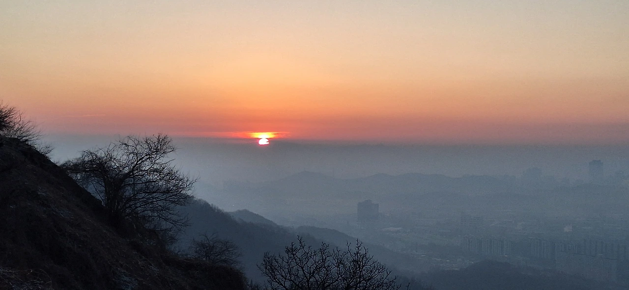 오늘 아침 뜨는 해를 보고 와서 생각했다. 무작정이라도 해처럼 한번 떠서 하루를 지나보기로했다. 미세먼지 가득한 아침 뿌옇고 흐린 하늘은 앞이 캄캄했다. 솔직히 해를 보기 전까지도 내 머릿속처럼 흐릿했다. 해가 오르고 하늘 높이 지나가면서 동네가 밝아졌다. 안개인지 미세먼지는 점차 사라지고 파란 하늘이 우리를 맞이했다. 두시간의 산행같은 산책을 하면서 글쓰는 일 역시 조금 가벼운 산책을 해야겠다는 생각이 들었다.
