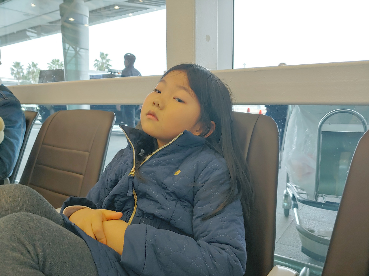 드디어 점심시간쯤 집에서 출발했다. 집에서 공항까지는 약 한 시간 거리. 비행기에서 잠들어야 하는 둘째가 잠들지 않도록 평소에 신나 하는 음악을 선곡하고, 아이가 좋아하는 약간의 간식을 준비했다. 그리고 미리 큰아이를 시켜 동생이 잠들지 않도록 큰소리로 노래하라고 지시했다.