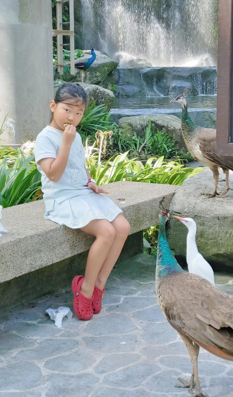병아리를 키우기 전에도 우리 아이들은 새나 동물을 만지는 것을 주저하지 않았다. 겁이 없는 것인지 아니면, 모든 생명에 대한 사랑이 가득한 것인지는 몰라도 곤충이든 새든 만지지 못하는 것이 없다. 닭 수 십 마리가 방사되어 있는 닭장에도 잘 들어가고, 공원에 풀어놓은 공작새의 꼬리도 끝까지 따라가서 만져보고야 만다. 그래서 그런지 버드파크 내에서 마음대로 돌아다니고 있는 새들을 봐도 겁먹지 않는다. 간식을 꺼내자마자 몰려든 새들 사이에서도 당황하지 않는다. 늘 당황하고 겁내는 건 나뿐이다. 아이들은 태연하게 새들에게 간식을 주고 기회를 봐서 만져보기도 한다. 놀랄 정도로 코앞에서 관찰하고 말도 거는 것을 보면 내 아이들이지만 범상치 않다는 생각이 든다.